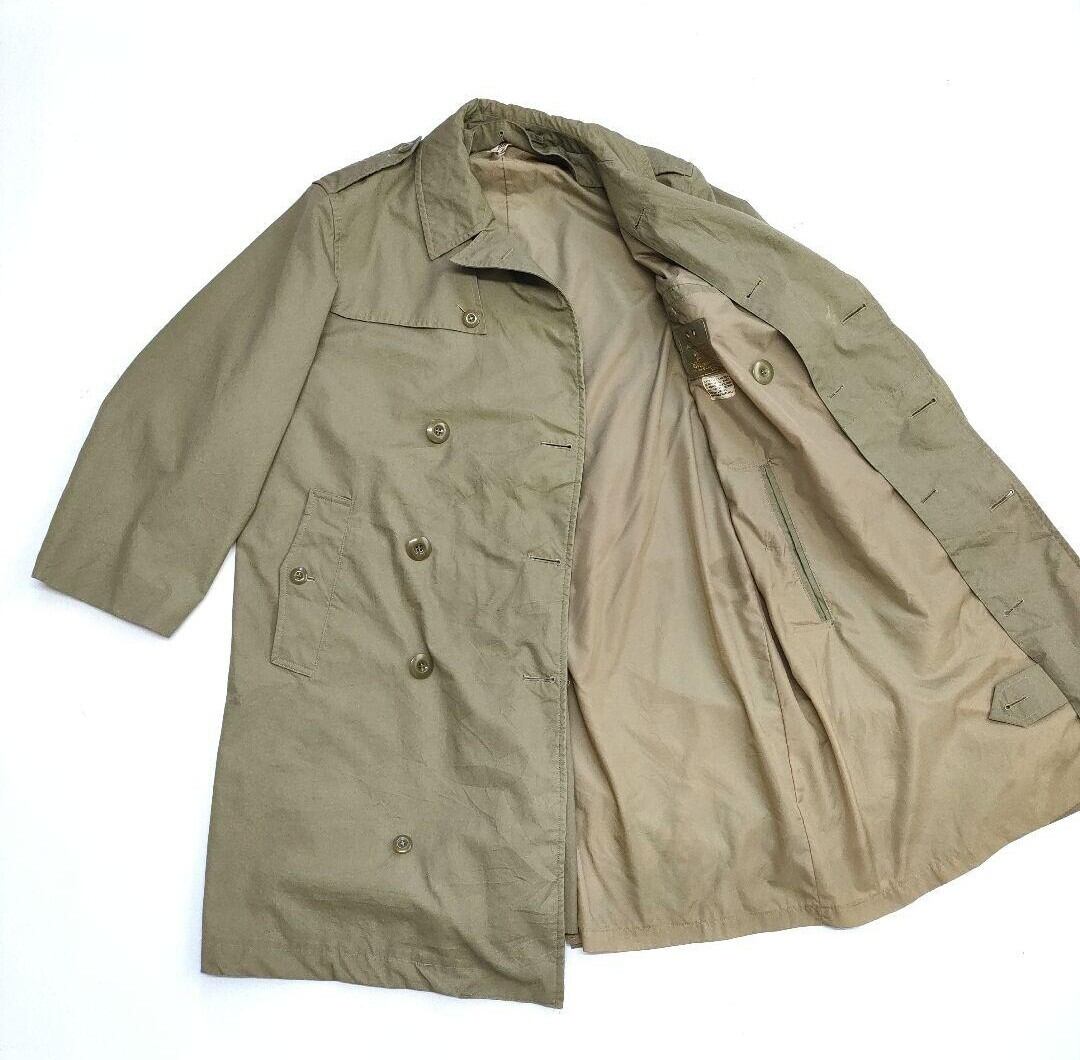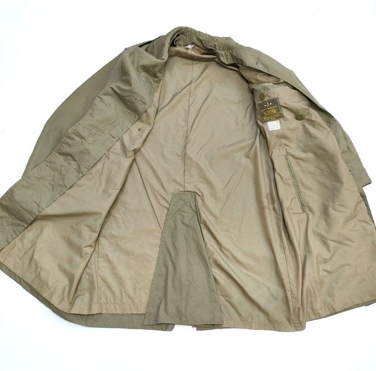 他の軍のトレンチコートと比較すると、うぐいす色やオリーブグリーンのような、綺麗な色をしているのが特徴です。