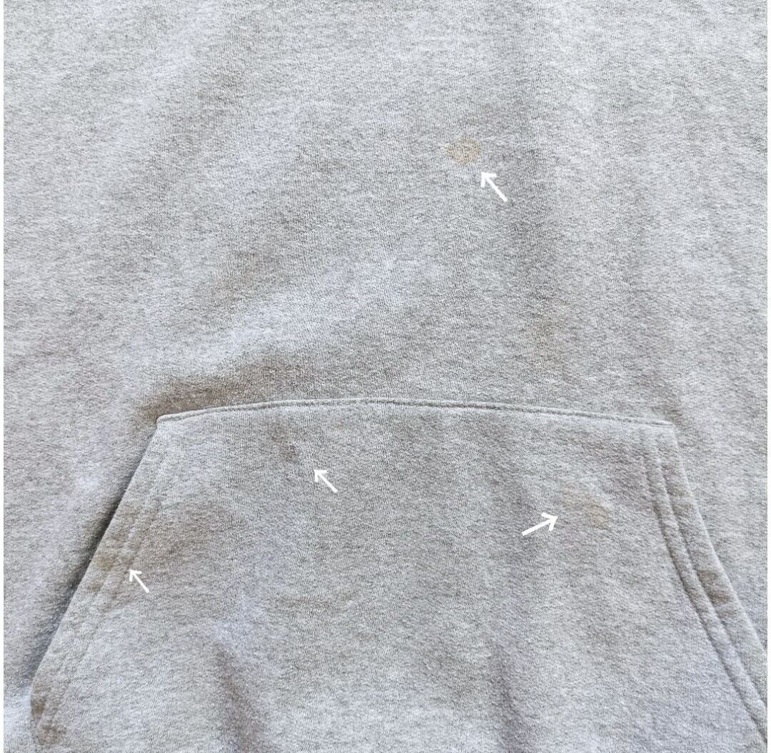 全体的に若干の使用感があり、数箇所シミと袖口・首元の汚れはありますが、大きなダメージはなくまだまだ着ていただける状態です。