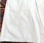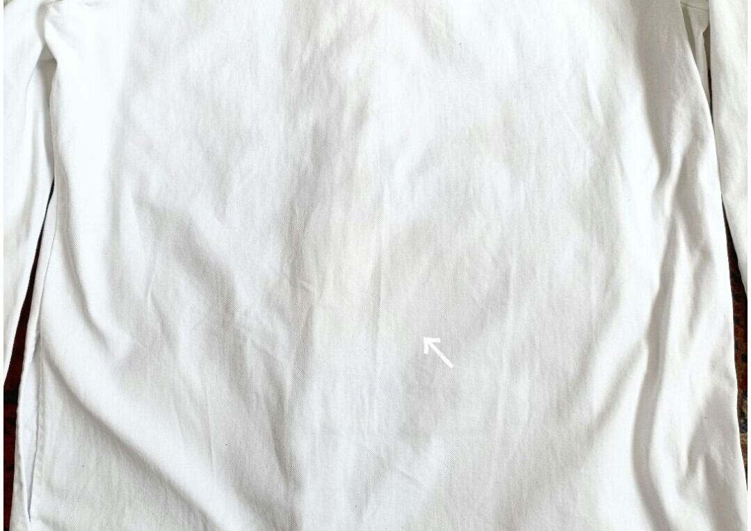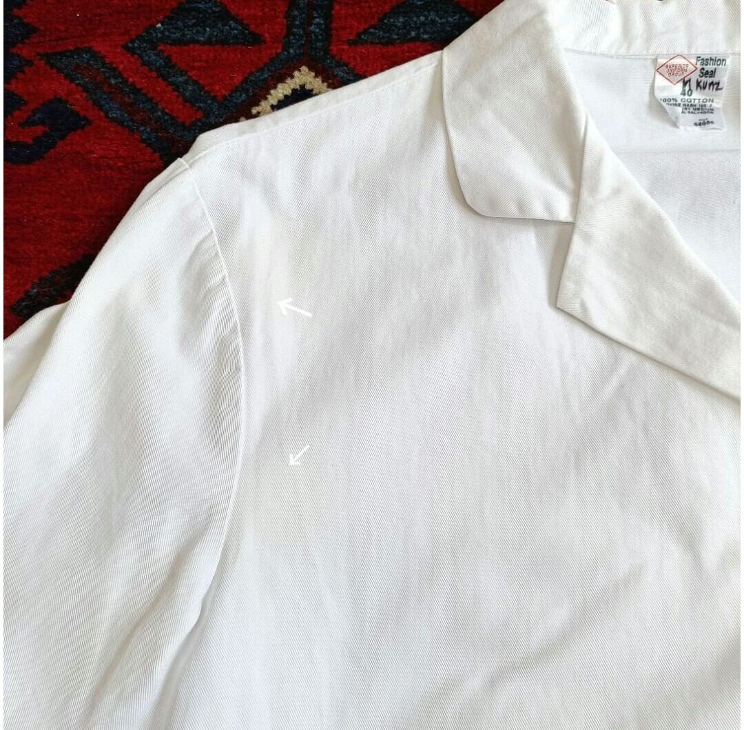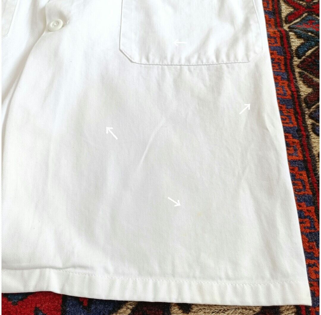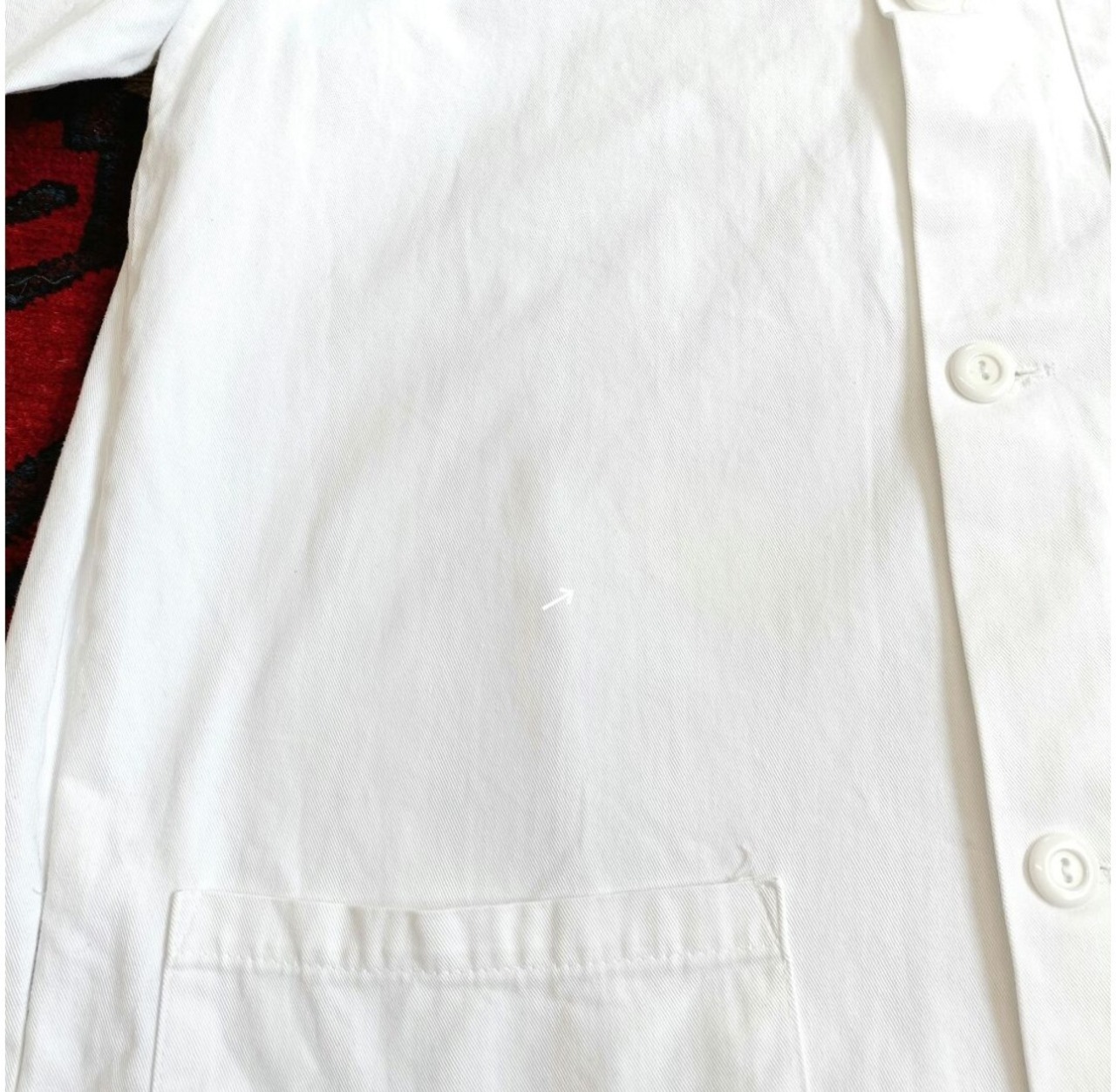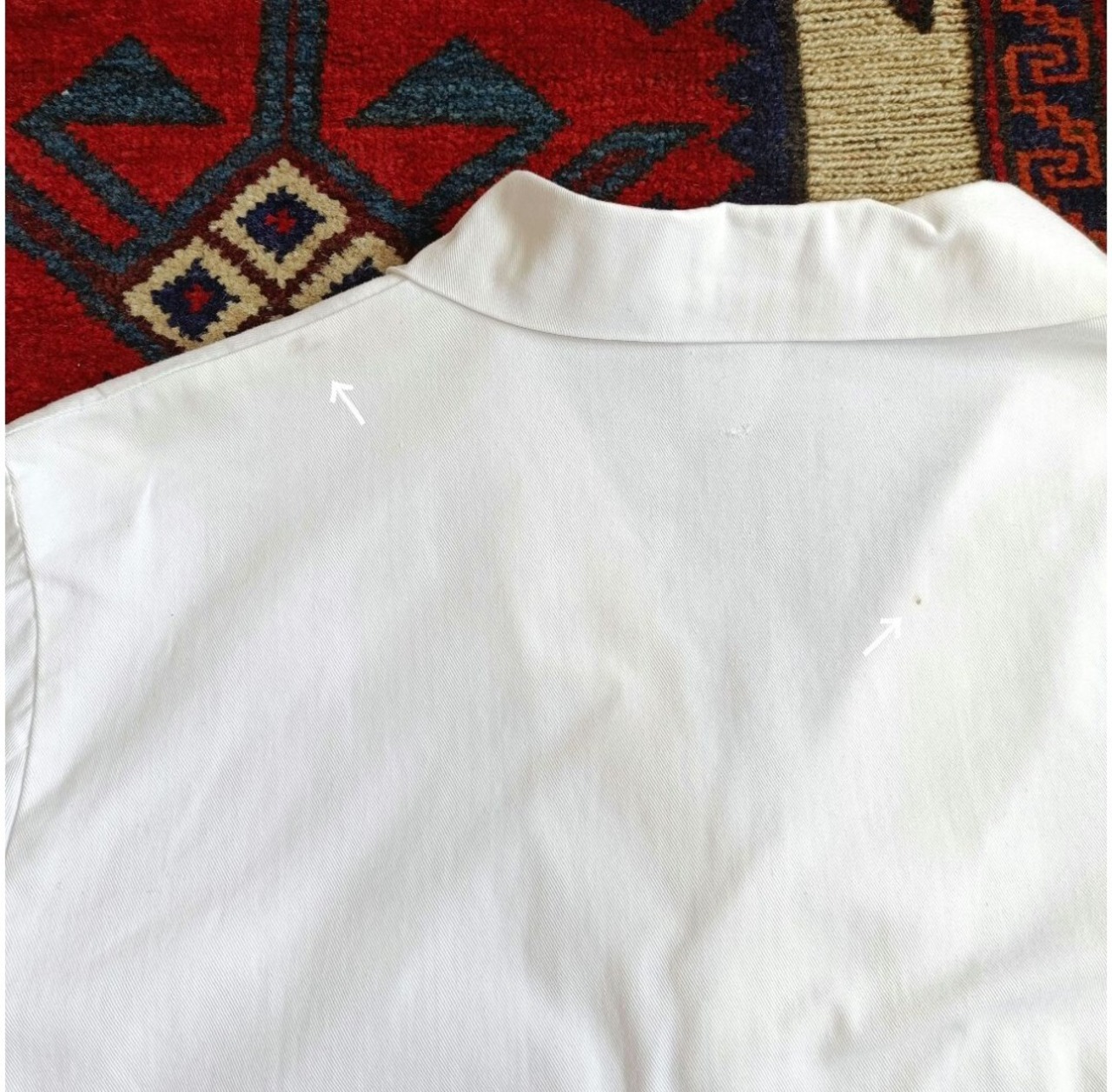 コットン製で、薄いシミや使用感はありますが、大きなダメージはなく長く着ていただける状態です。