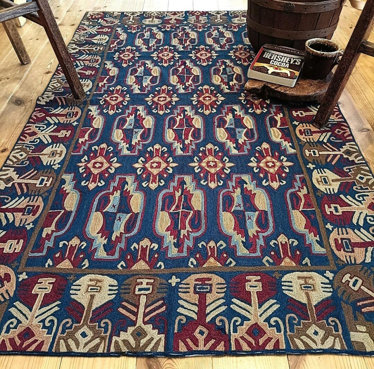 1980年代にフランスで流通していた、重厚な民族モチーフが印象的なチェーンステッチラグです。