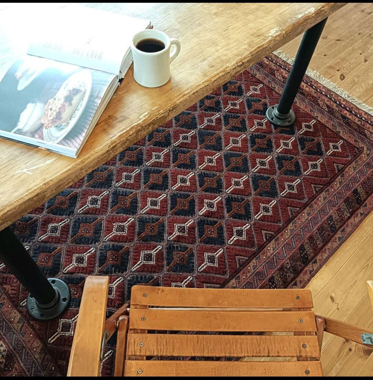 ※ヴィンテージラグにはウール特有のにおいがございます。天日干し等で軽減されますが、気になる方はお控えください。