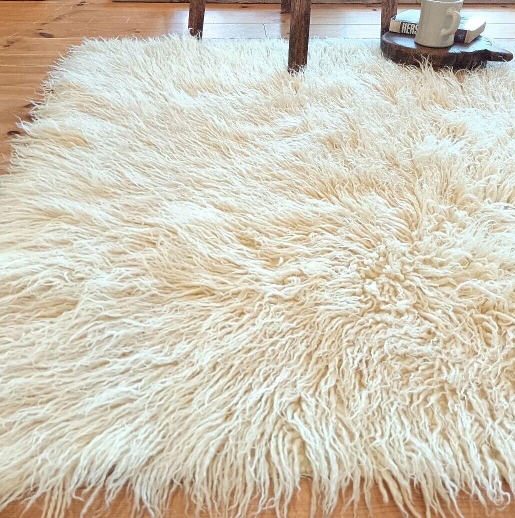 人気のホワイト系はヴィンテージ家具や植物はもちろん、他の色味のラグとも合わせやすい一枚です。