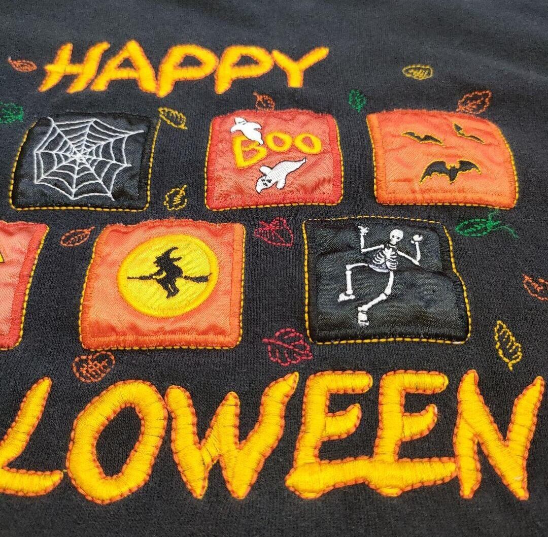 美品! ハロウィンモチーフの刺繍が施されたUSブラックスウェットです。