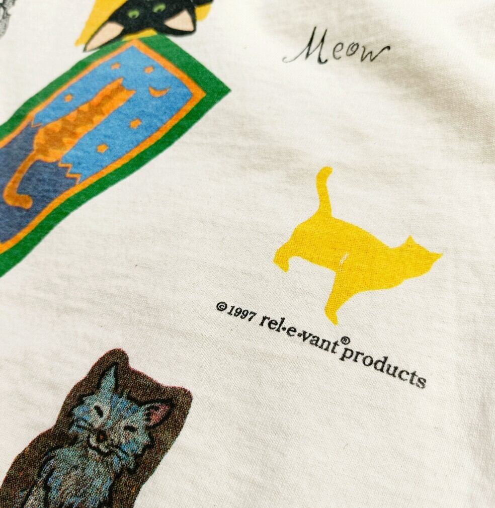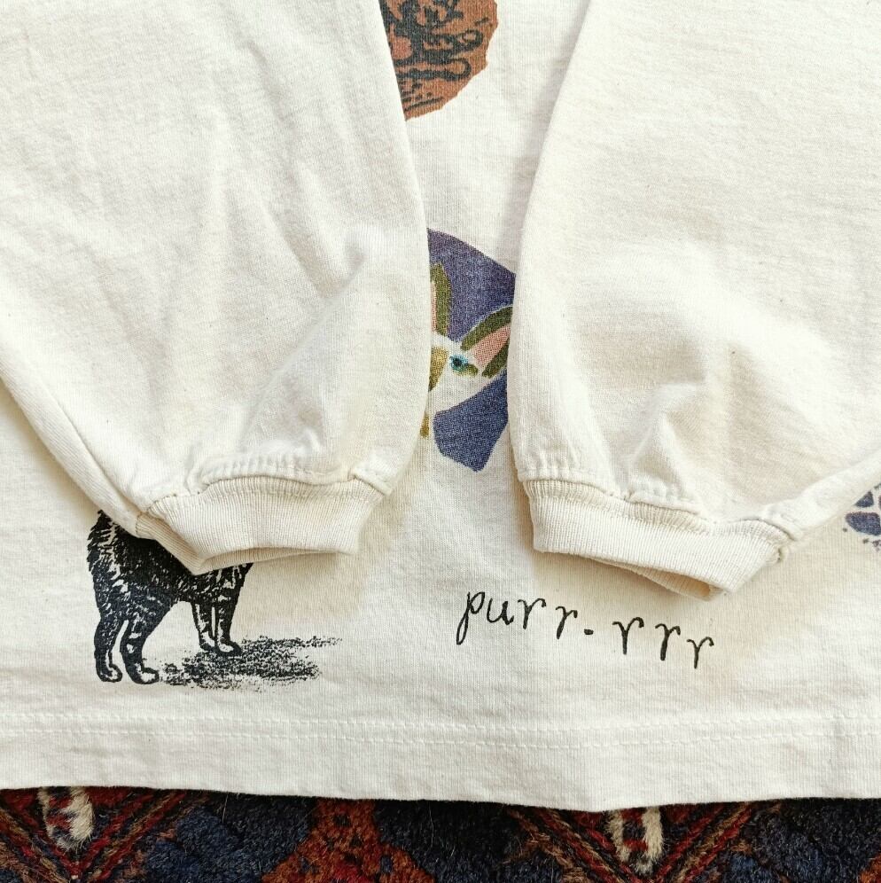 様々なタッチの猫が両面に描かれた、rel•e•vant•productsの長袖Tシャツです。