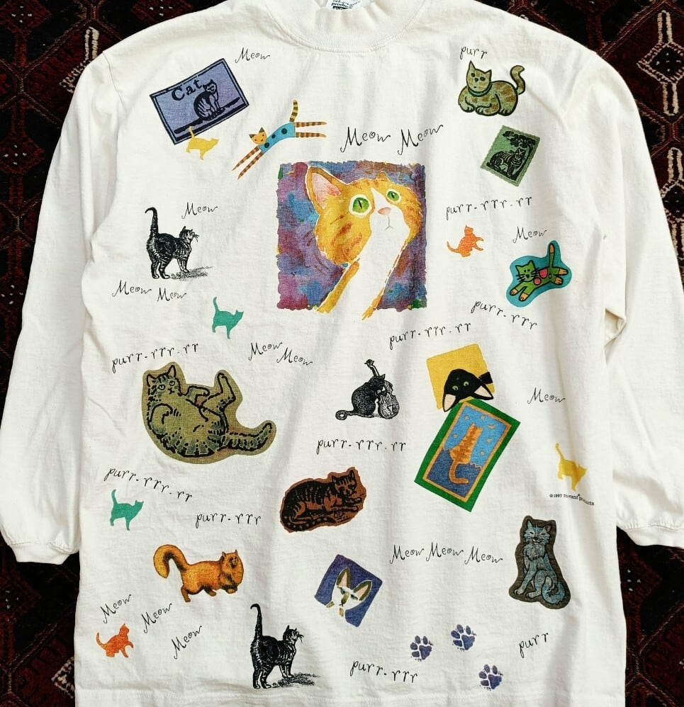 ◆ 90s VINTAGE ◆ USA / "CAT" Animal Print Long Sleeve T-shirt