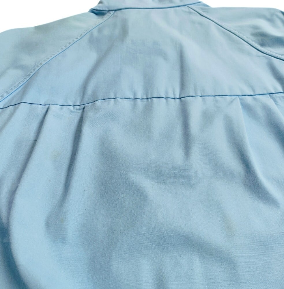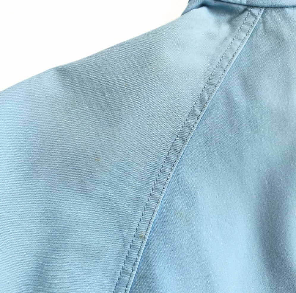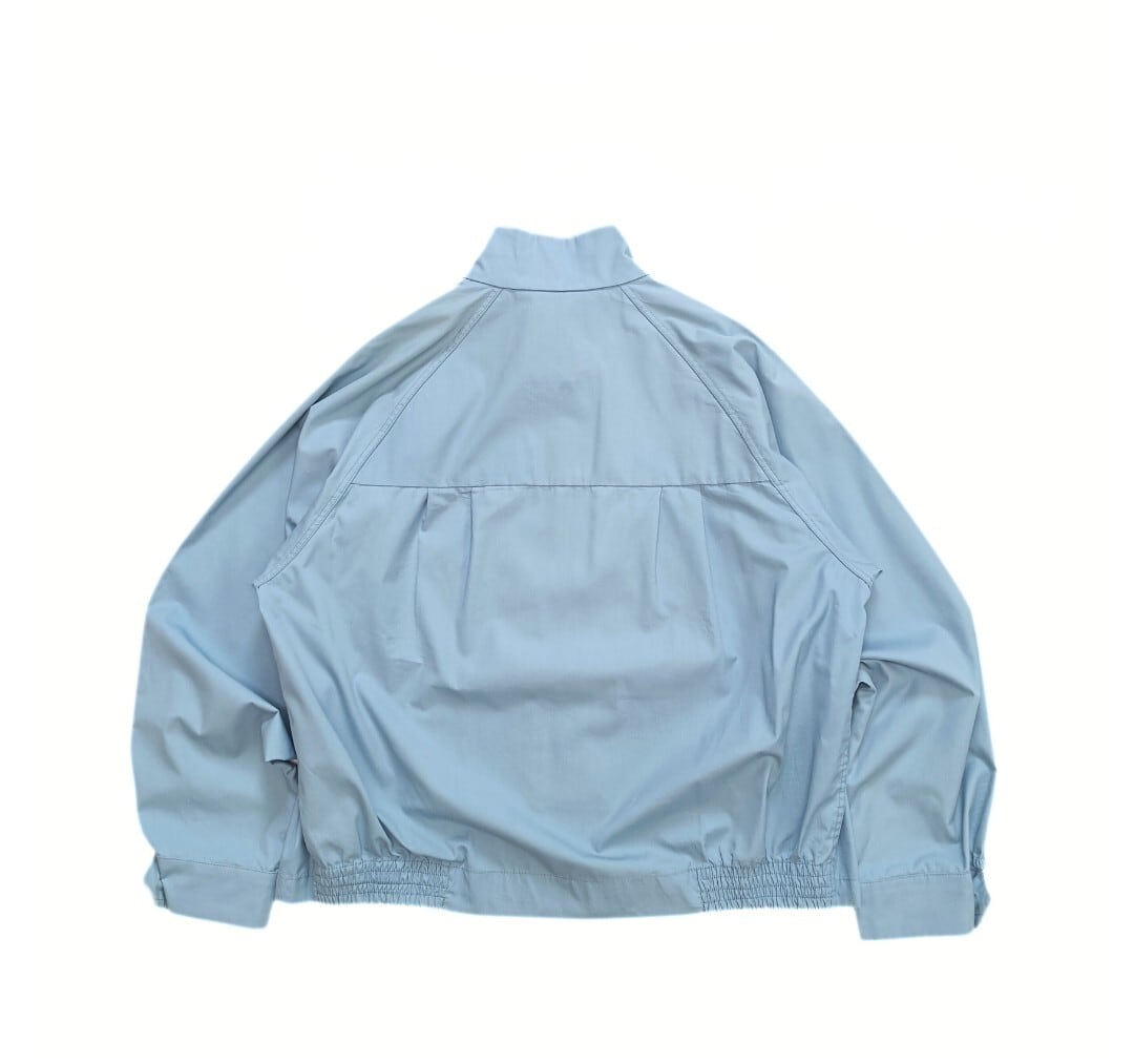 ライトブルーのボディはさらさらとしたポリコットン生地 で、デニムやチノとも合わせやすく秋冬に向けて重宝するアイテムです。