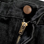 タフに使えるUS製のデニム生地で、フロントはブーツの刻印が入ったジップを使用。フェード感のあるブラックデニムで、雰囲気抜群に仕上がっています。
