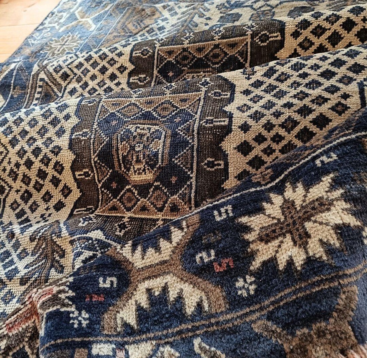 ※ヴィンテージラグにはウール特有のにおいがございます。天日干し等で軽減されますが、気になる方はお控えください。