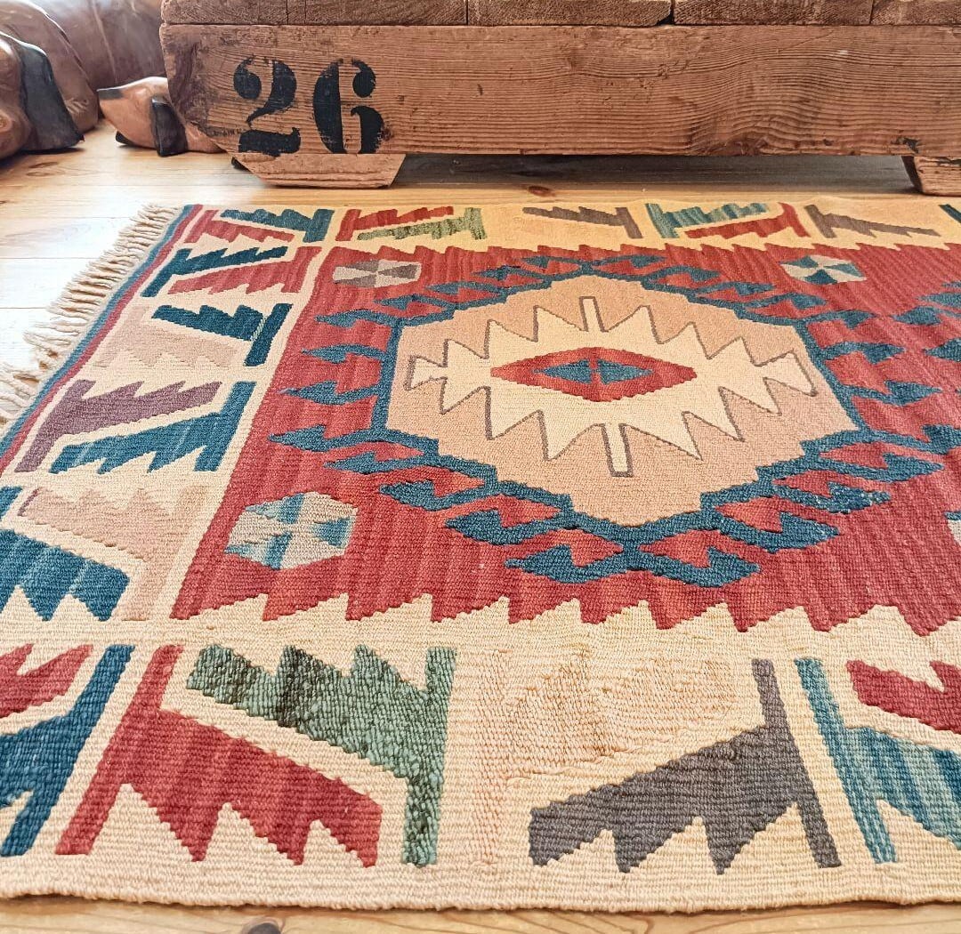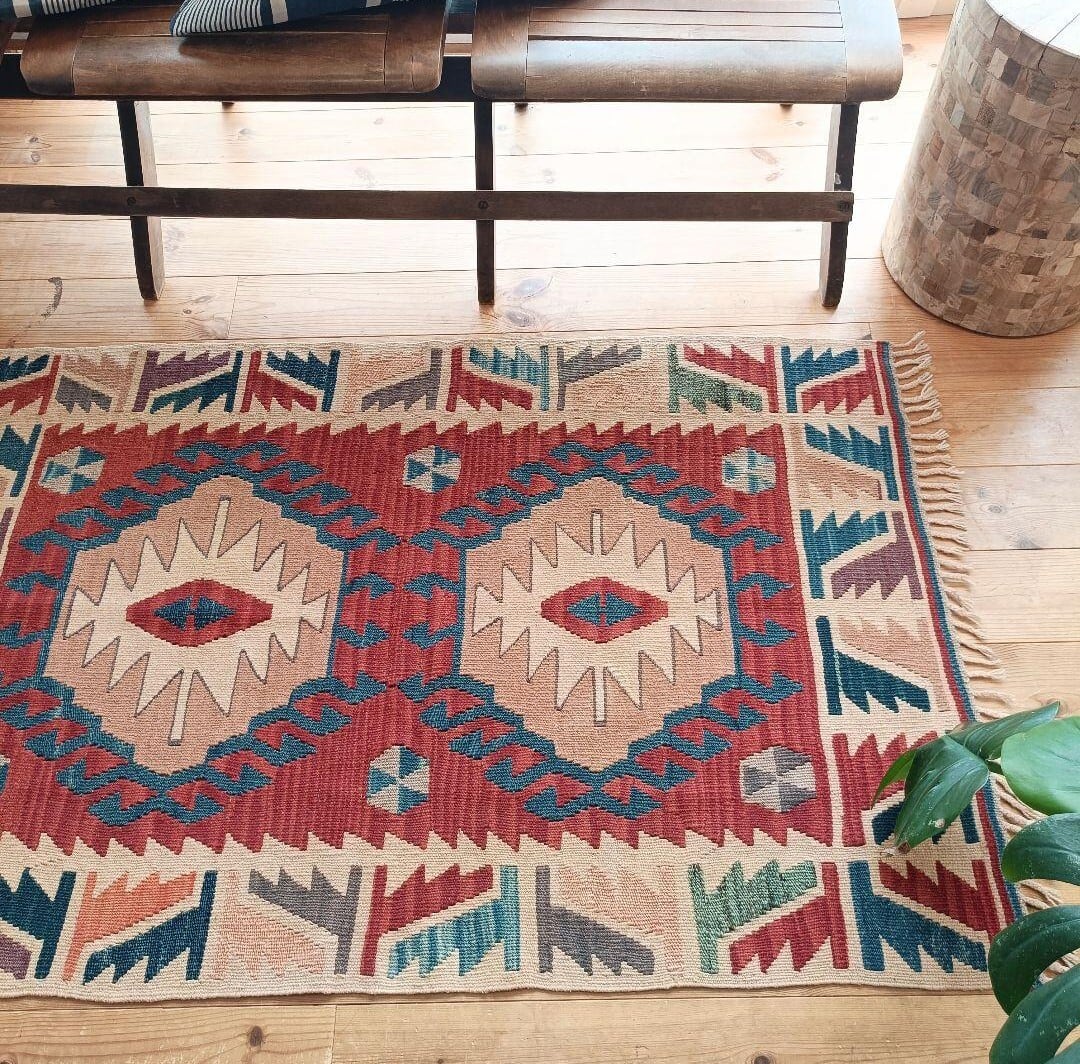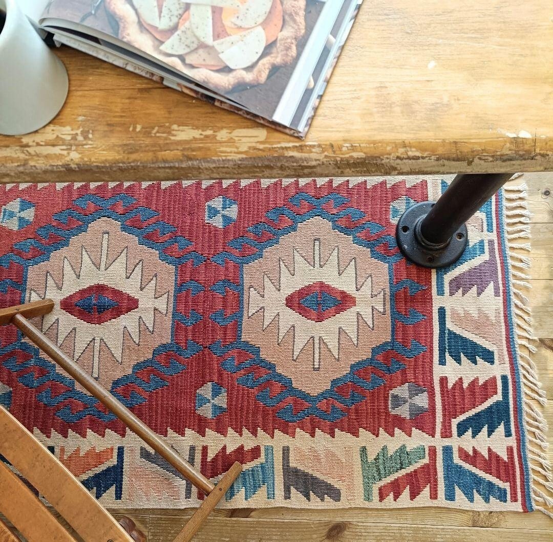 ※ヴィンテージラグ特有の匂いがすることがございます。天日干しを繰り返すことで軽減しますが、気になる方はご遠慮ください。