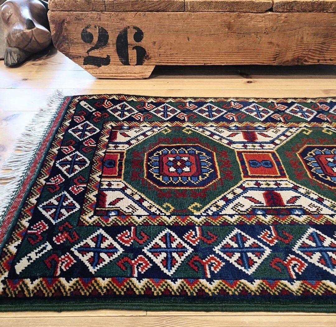 珍しいグリーン系統◎美しいカラーリングのアフガンラグです。
