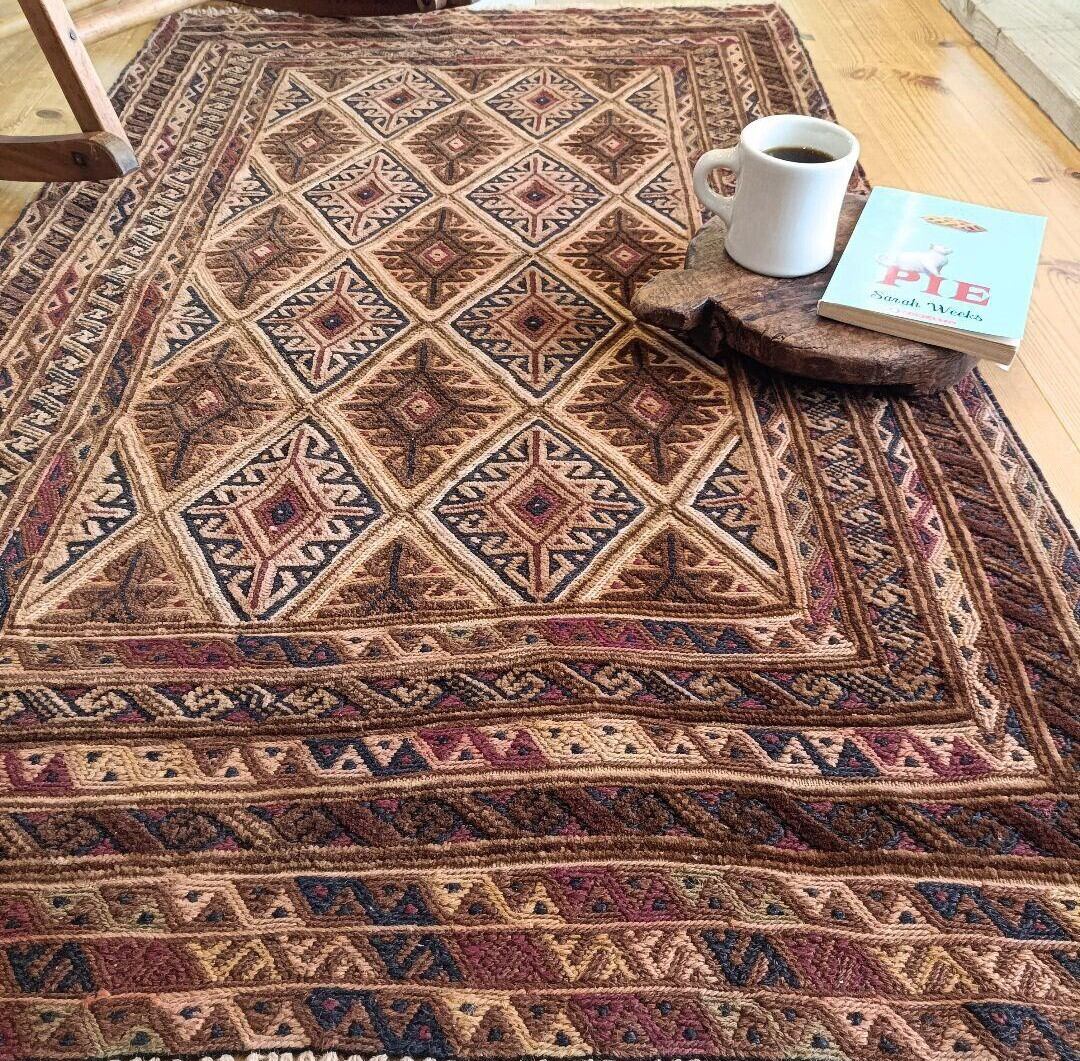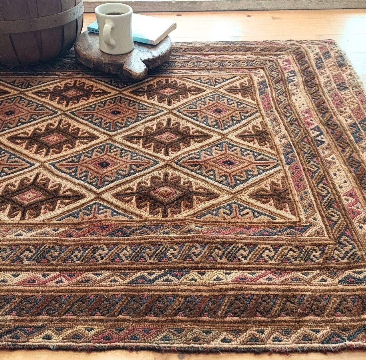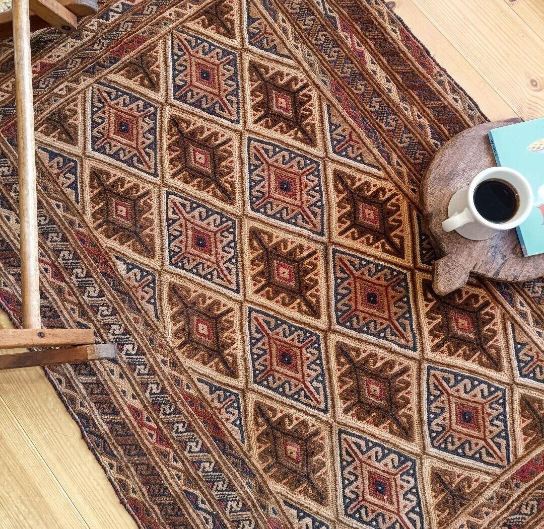 高度なスマック織りのオールドキリム “マシュワニラグ” です。送料無料でお届けいたします。