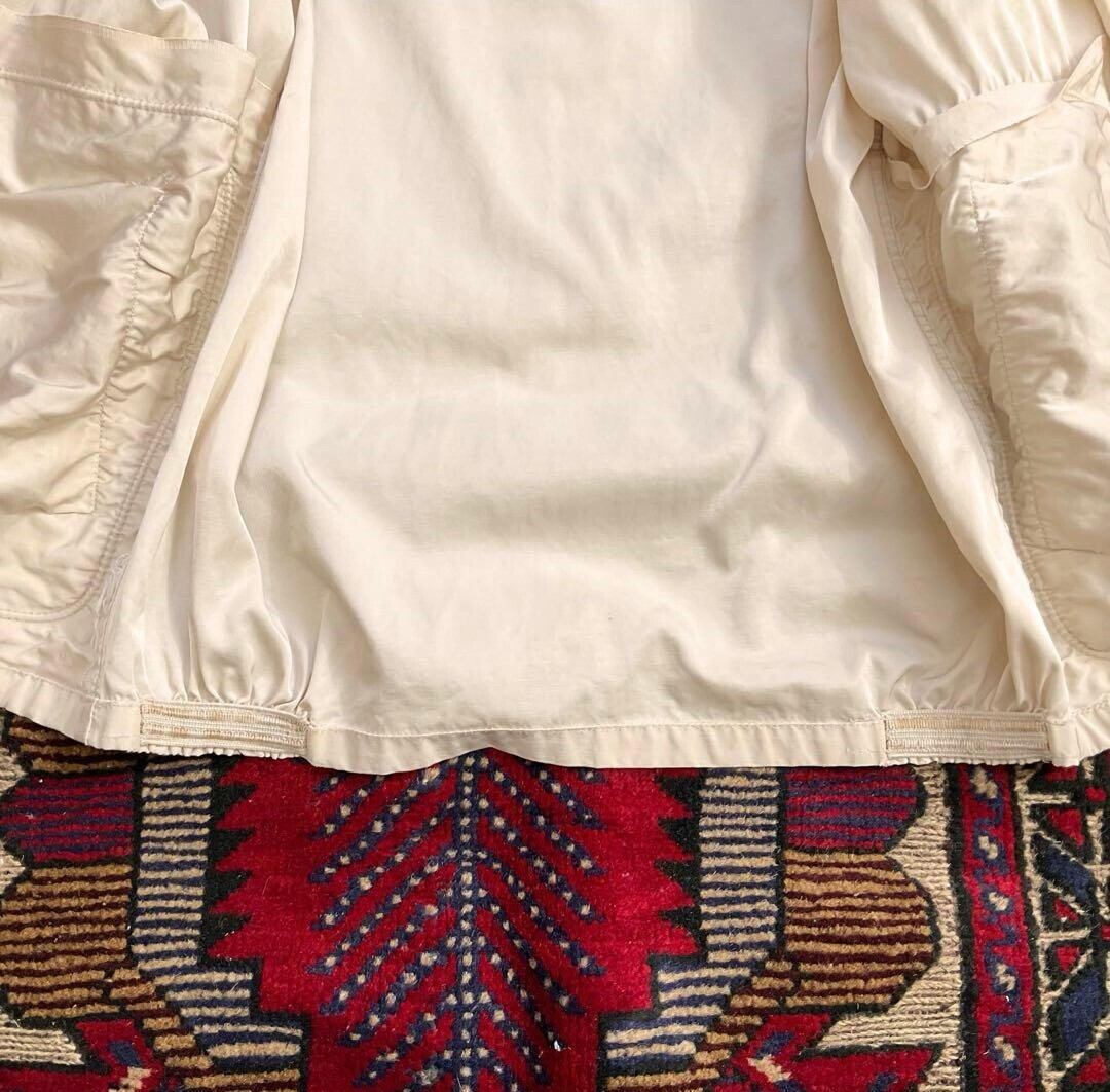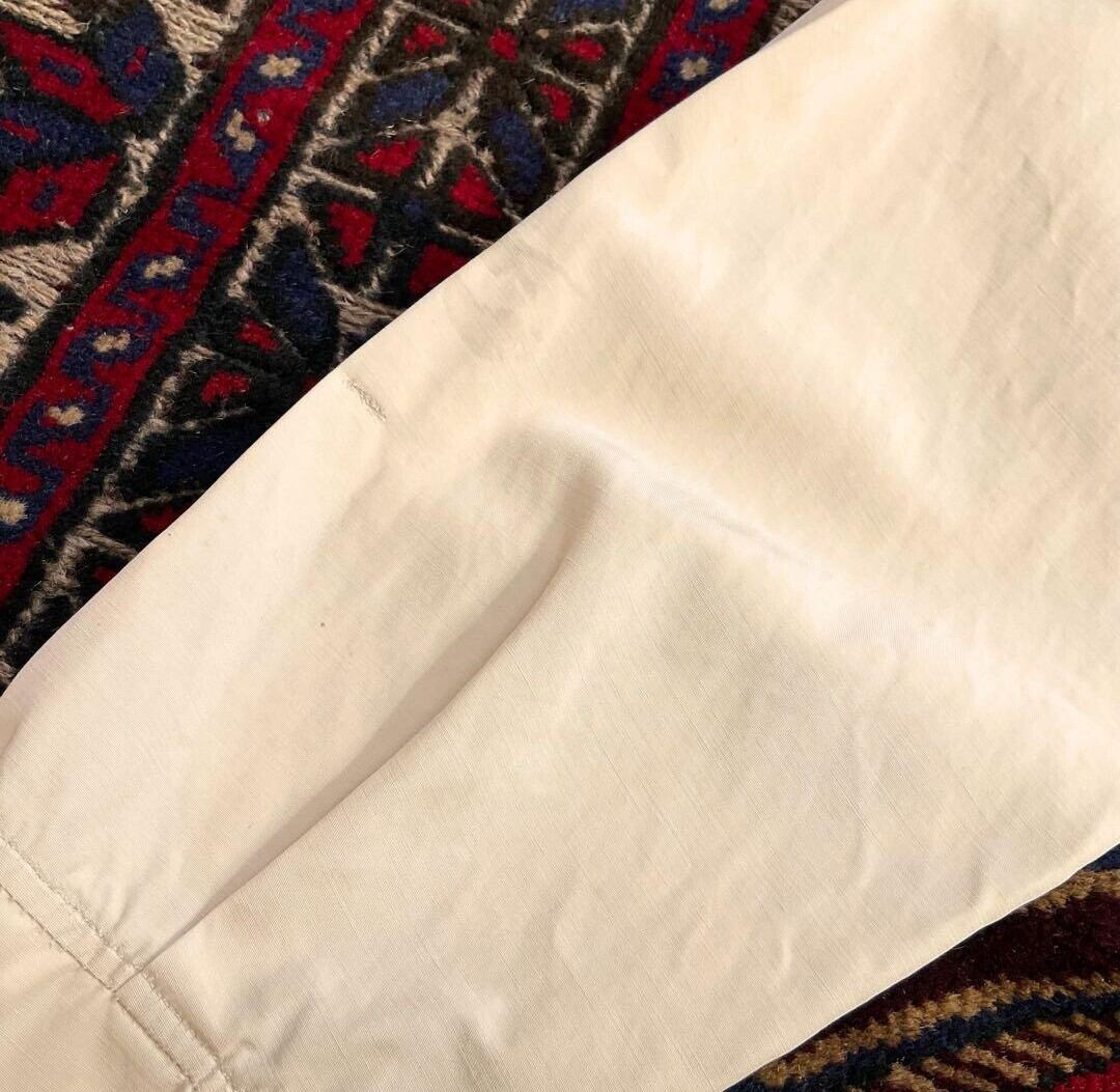 ライトベージュのボディはさらさらとした生地 で、デニムやチノとも合わせやすく春夏に向けて重宝するアイテムです。