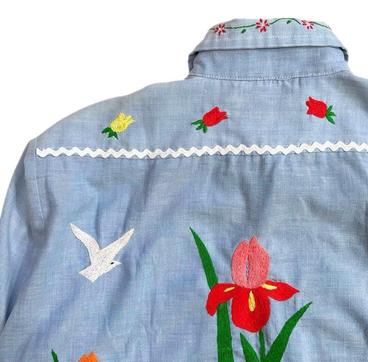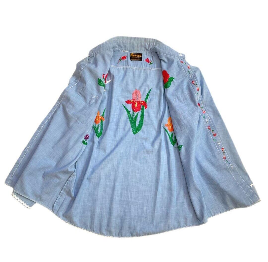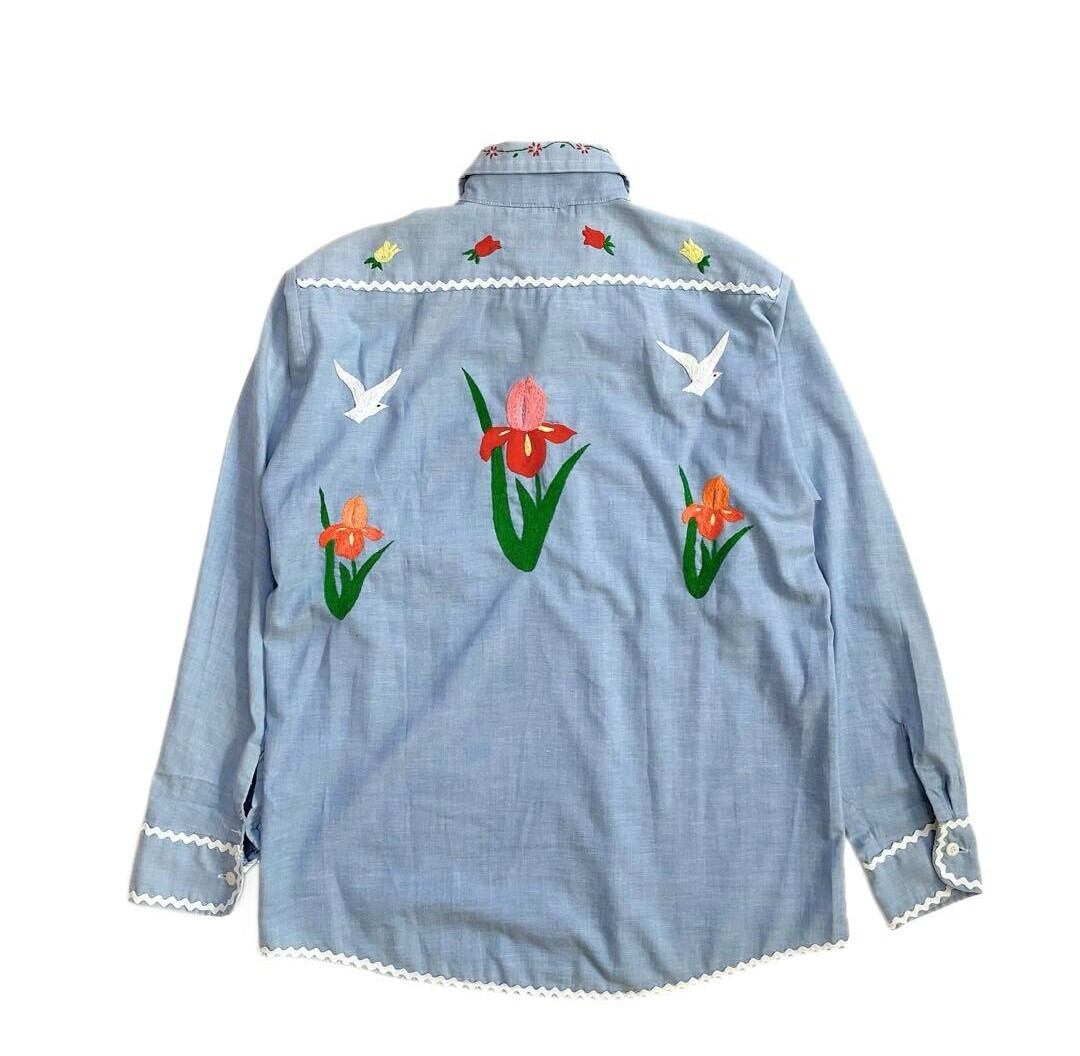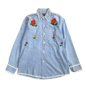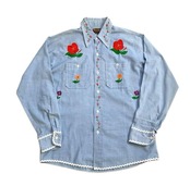 全面に刺繍が施された一点もの。シャンブレーならではのさらっとした着心地で、レイヤードアイテムとしても重宝します。