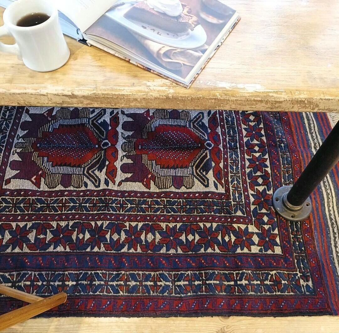 ※ヴィンテージラグにはウール特有のにおいがございます。天日干し等で軽減されますが、気になる方はお控えください。