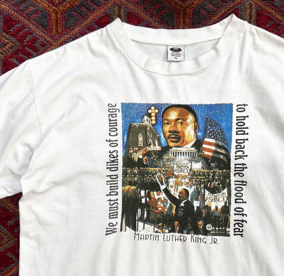 アメリカの公民権運動の指導者 マーティン•ルーサー•キング•ジュニアをモチーフにしたビッグプリントT。インパクト大の両面プリントで、これからの季節に大活躍のアイテムです◎