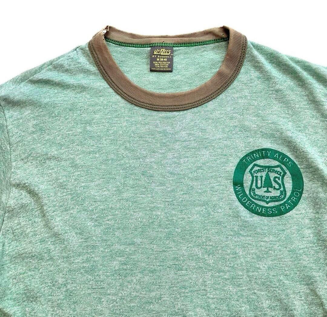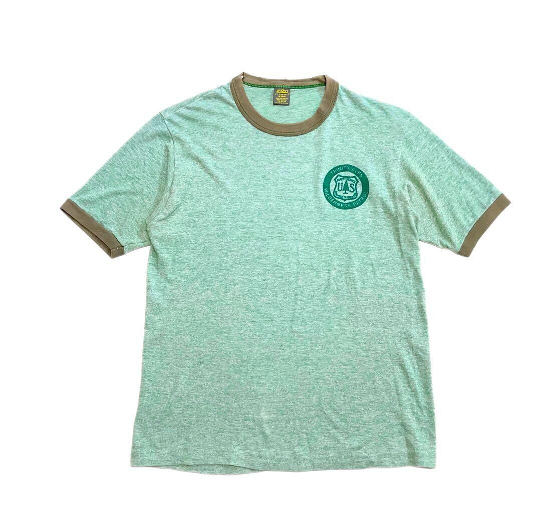 裾はシングルステッチ。霜降りグリーンのボディに『US FOREST SERVICE(アメリカ合衆国森林局)』のロゴが入った希少なアイテムです。