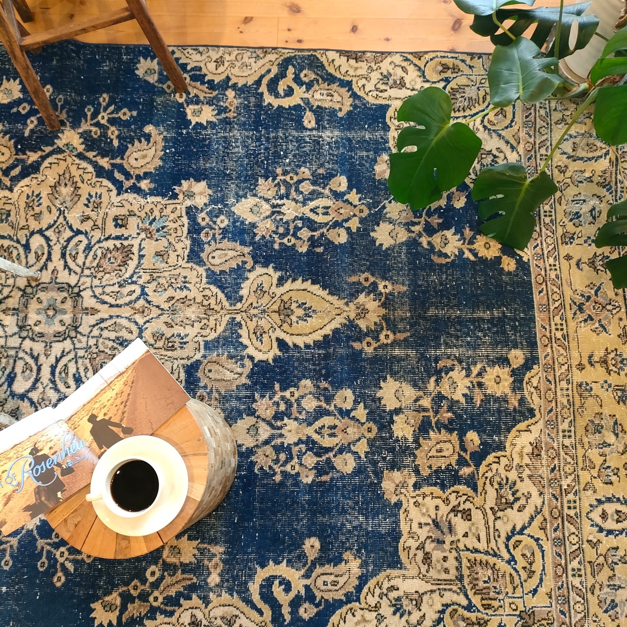 ※ヴィンテージラグにはウール特有のにおいがございます。天日干し等で軽減されますが、気になる方はお控えください。