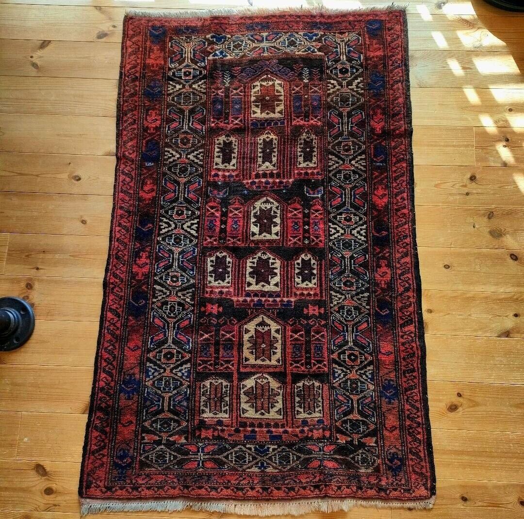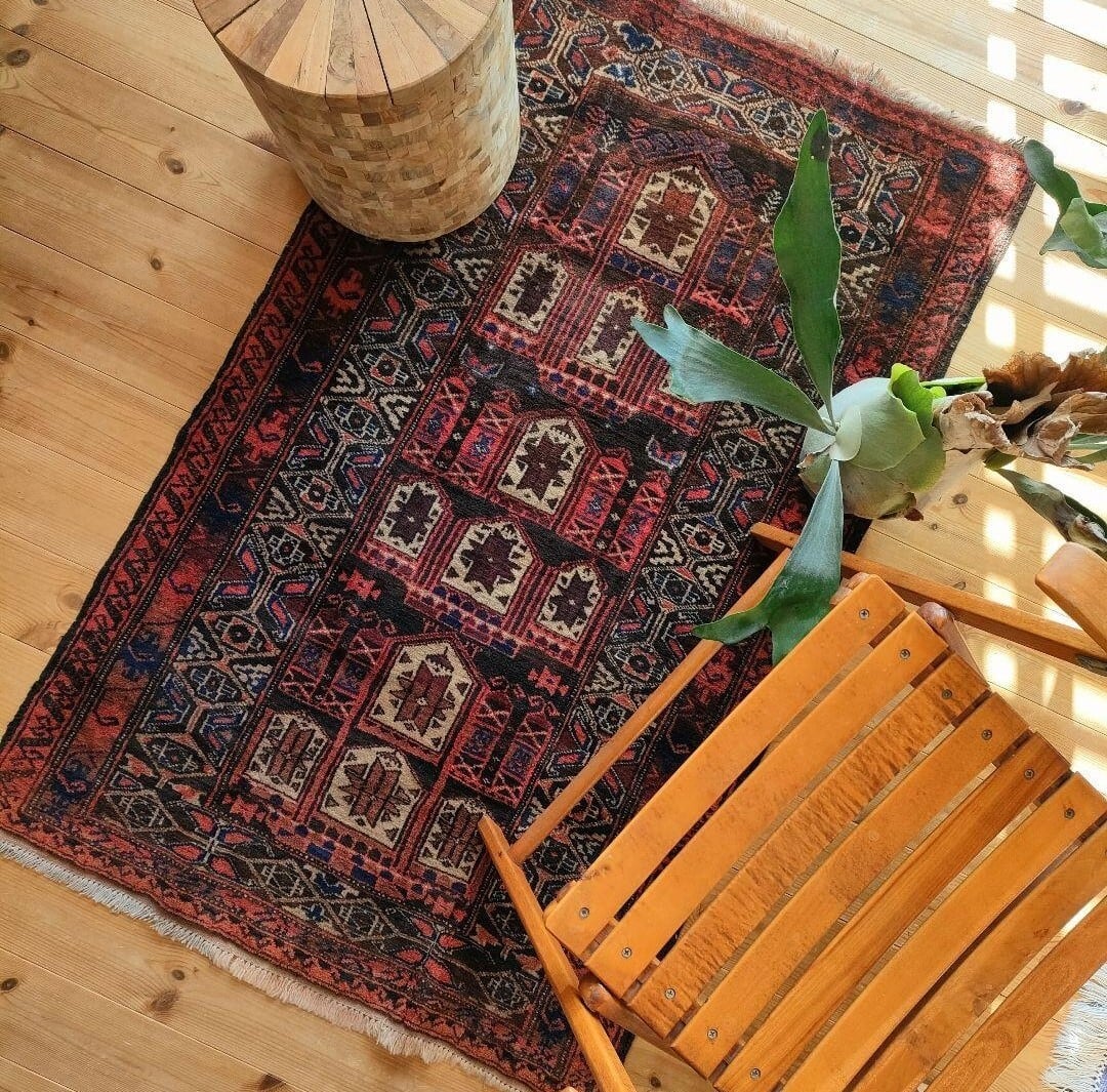 イランとアフガニスタンの国境地域に住むバルーチ族によって織られたバルーチラグ。