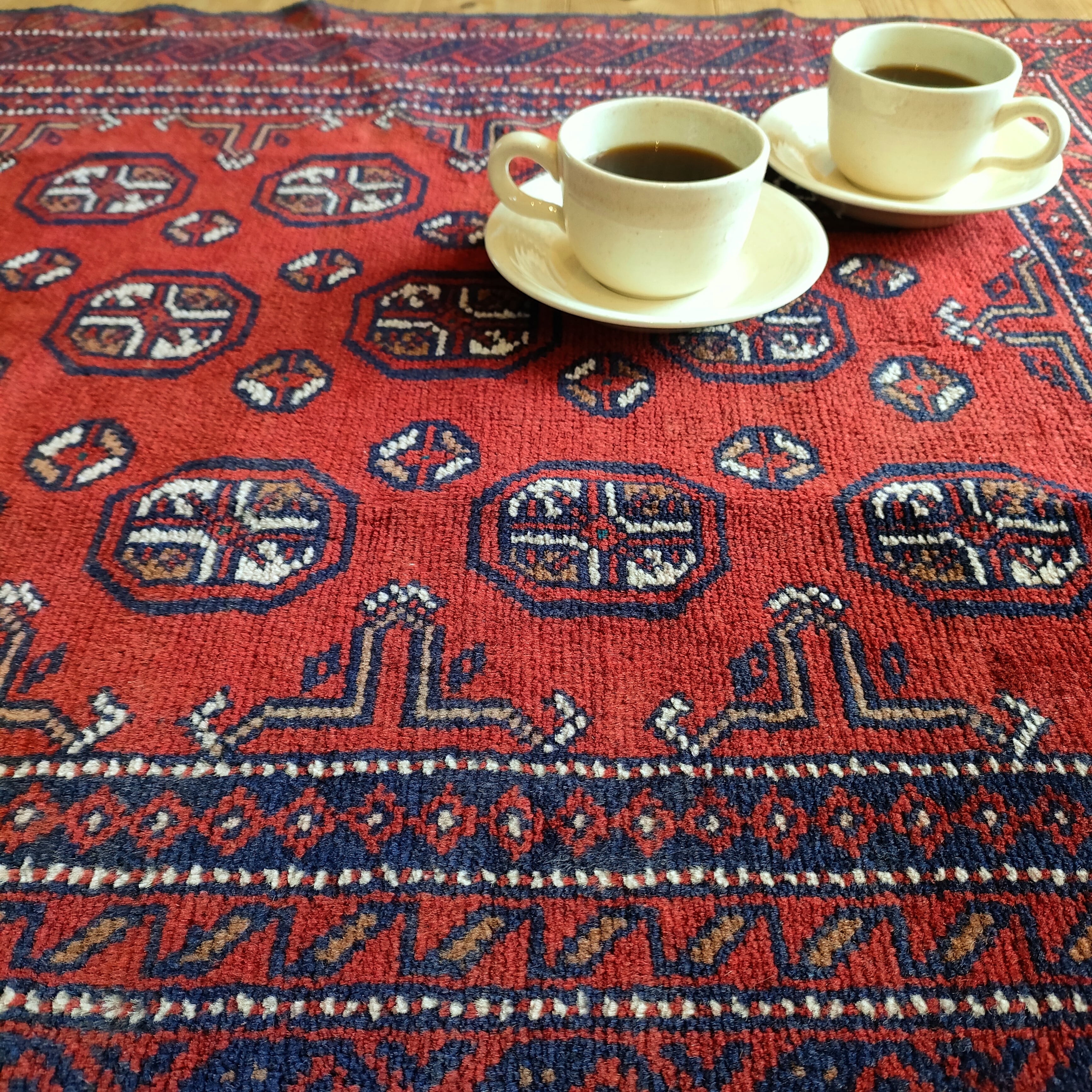 展示販売会で人気の高かったヴィンテージアフガンラグ。送料無料でお届けいたします。
