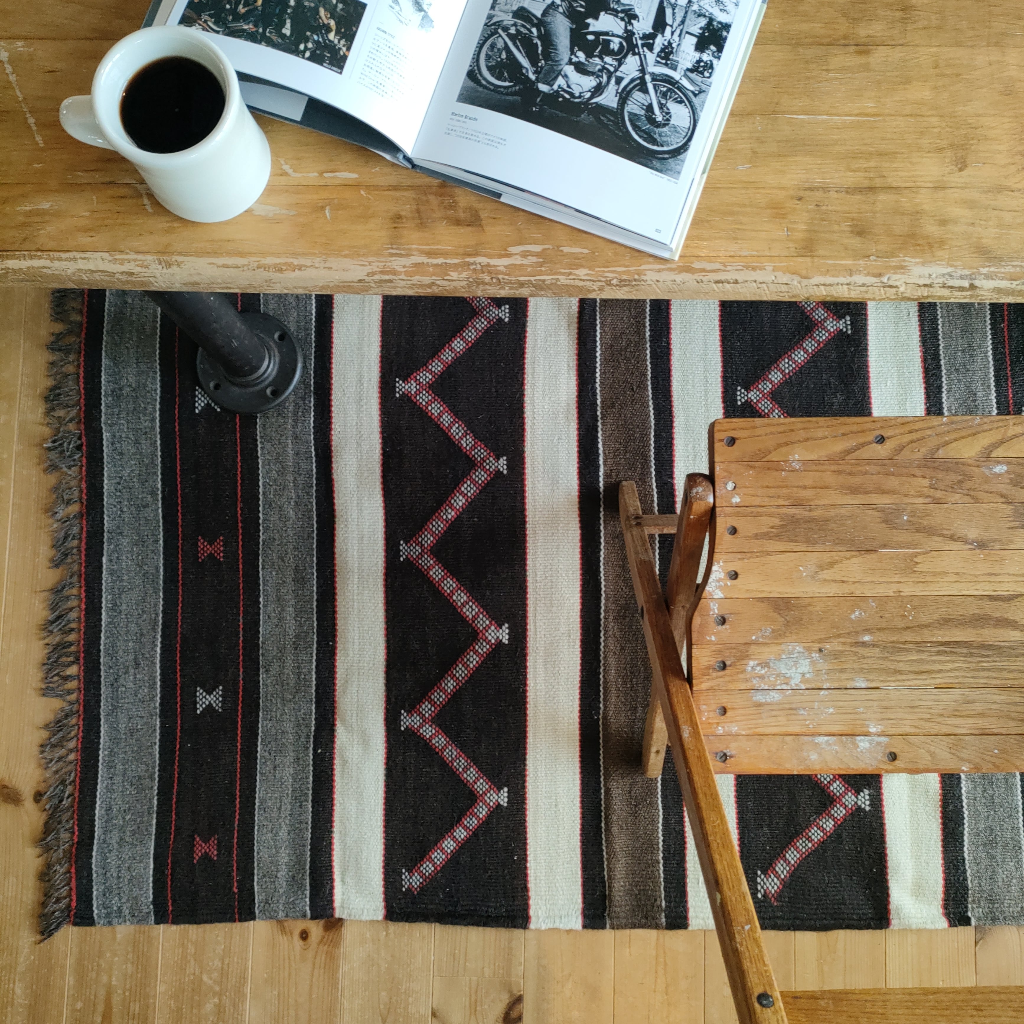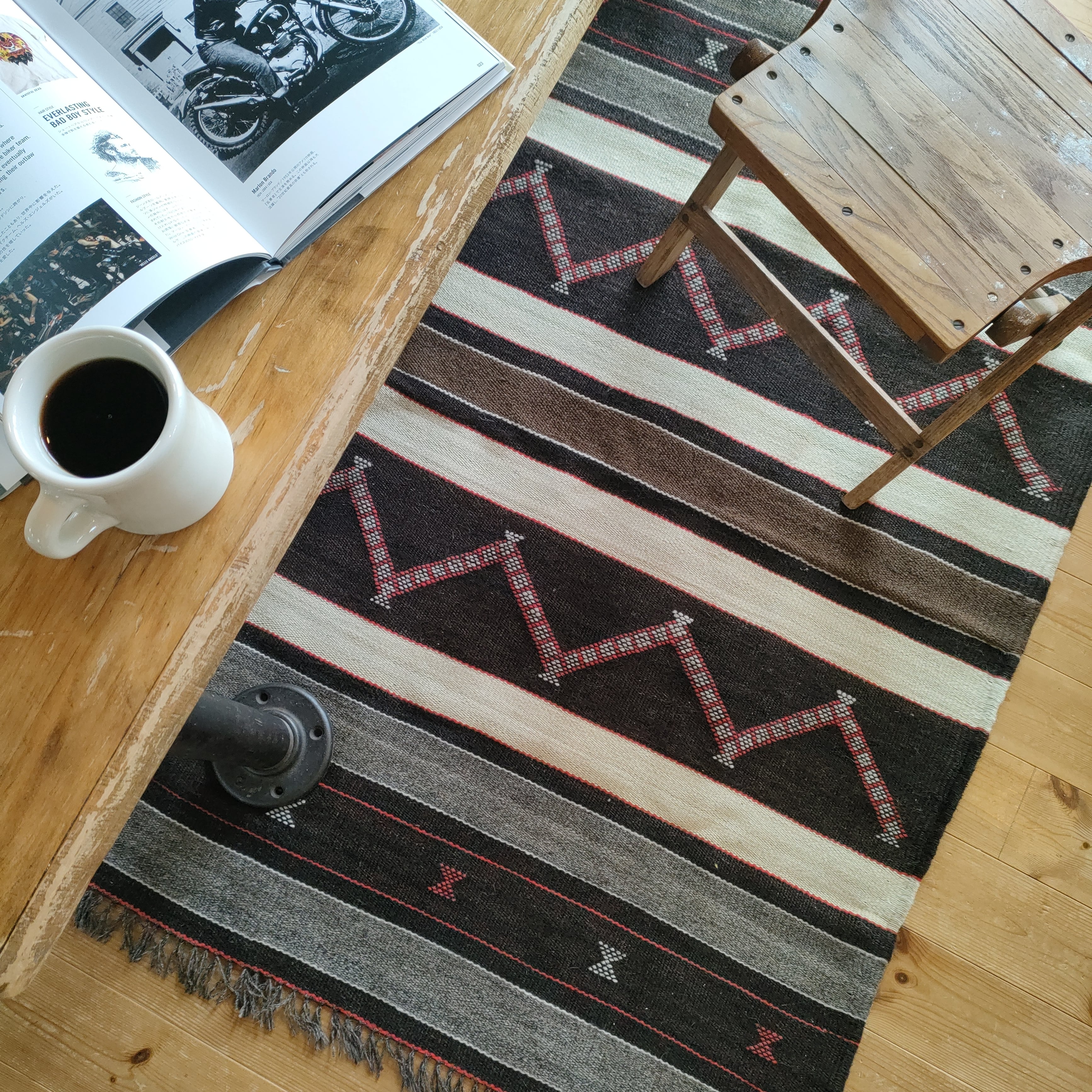 毛足の短いキリムタイプで、暑い季節もサラッとお使いいただけます。