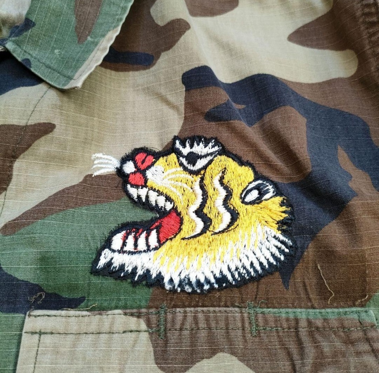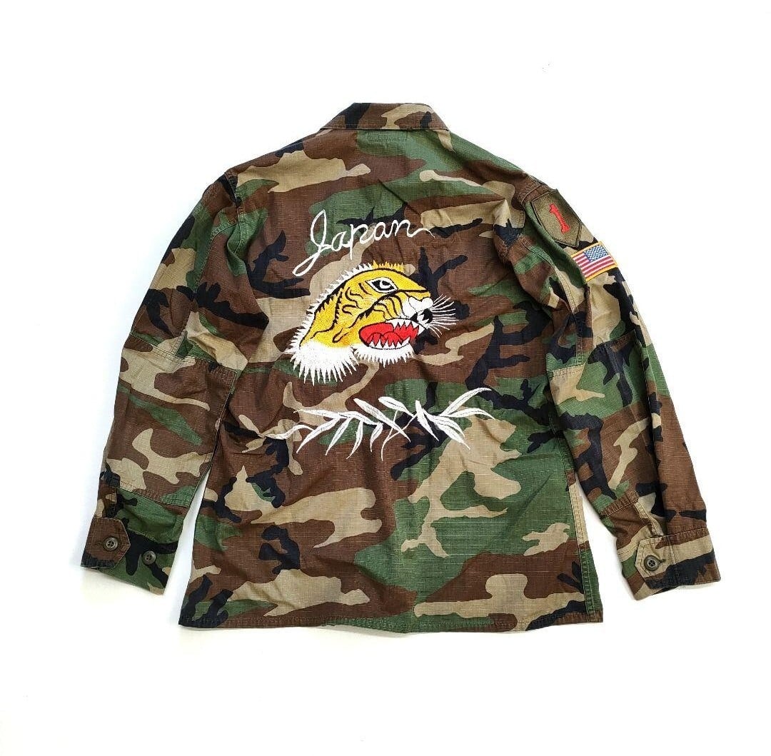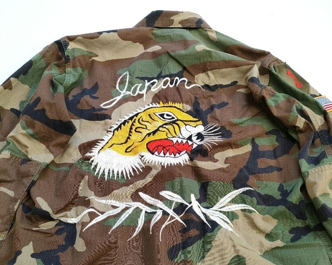 90年代米軍のカモジャケットに、刺繍が施されたスーベニアジャケットです。