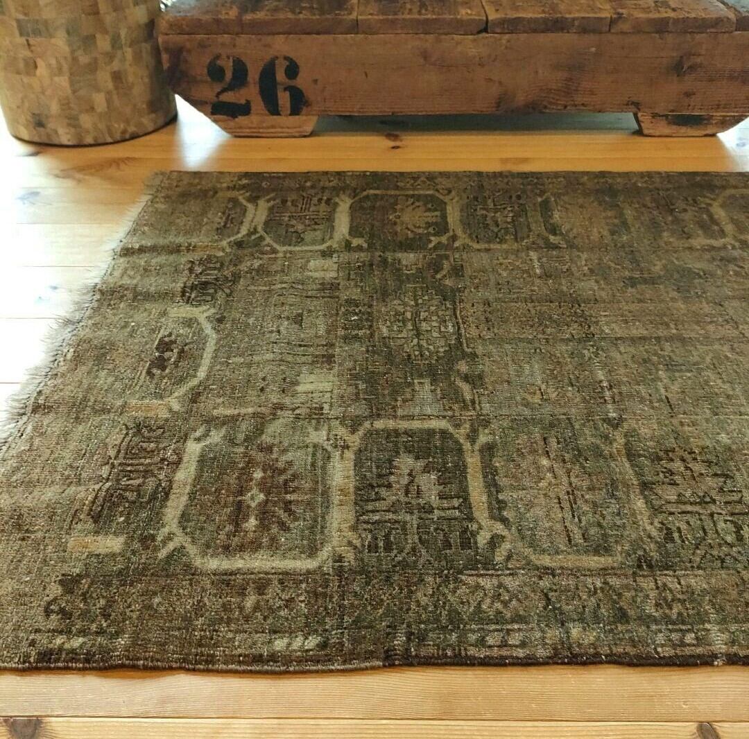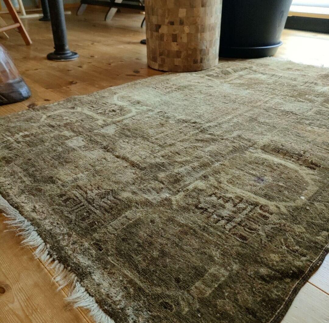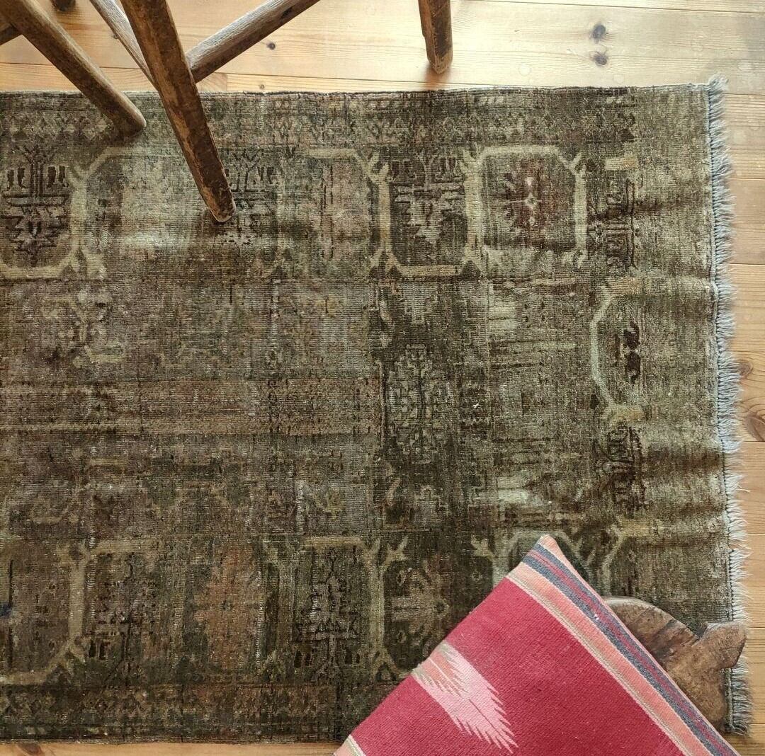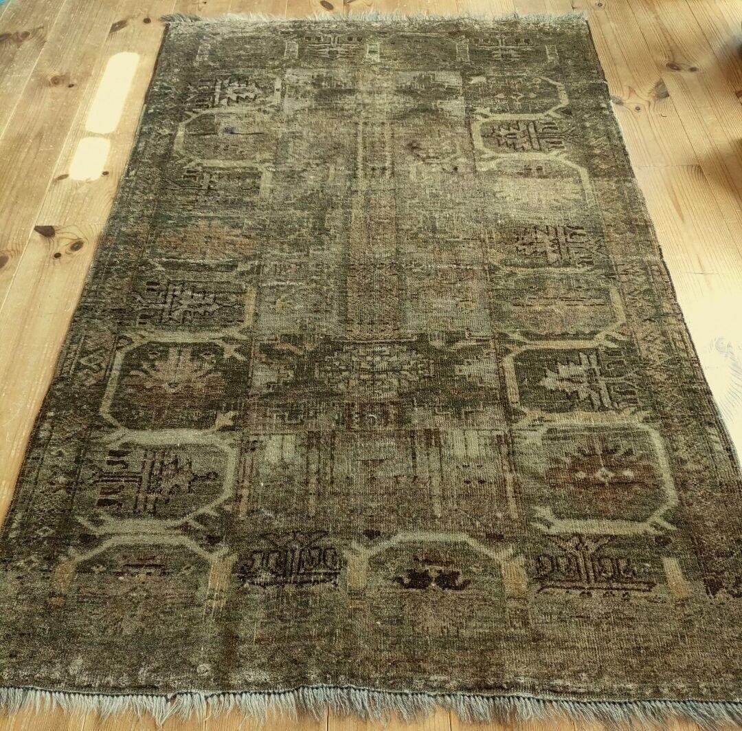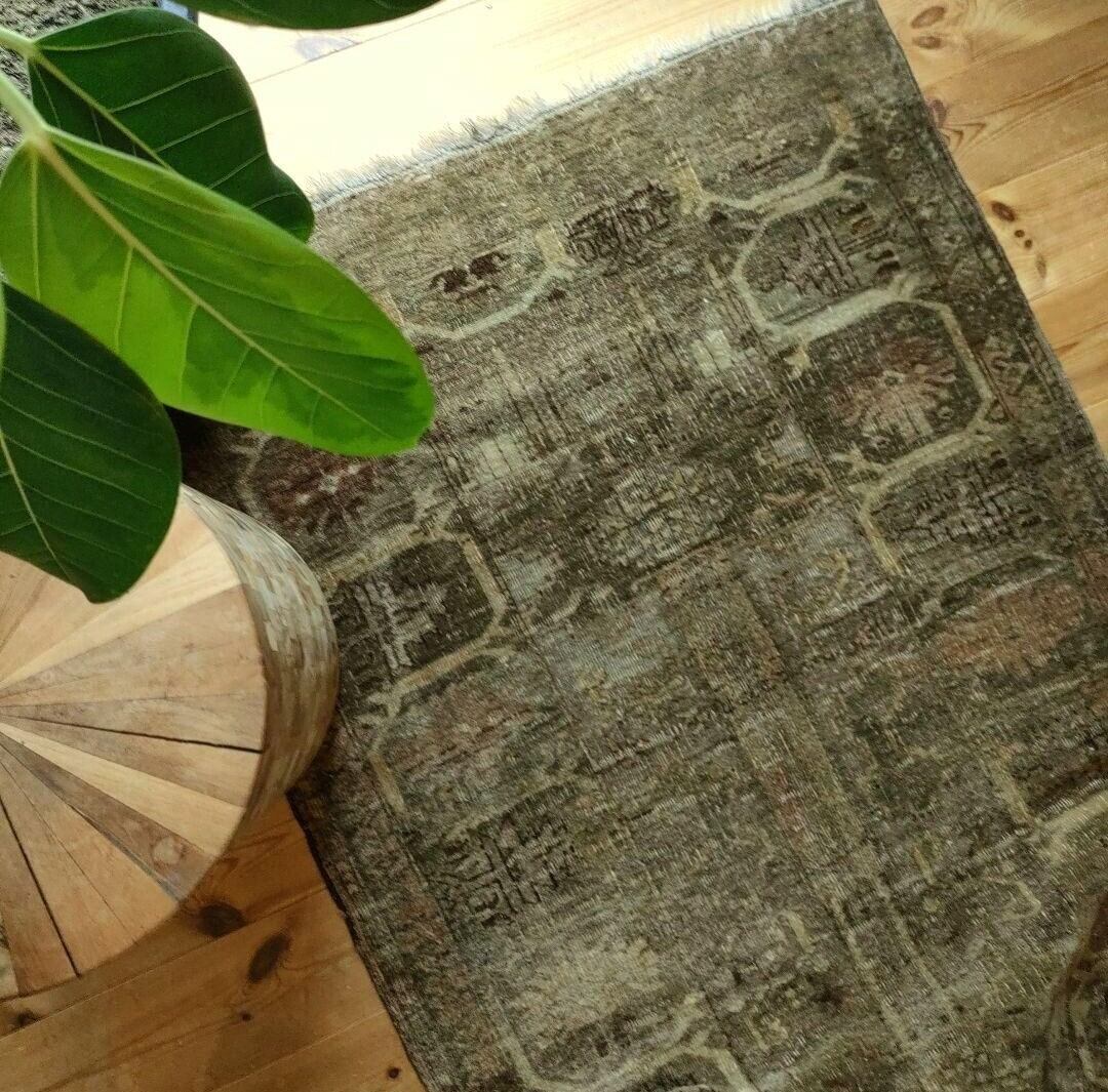 珍しいカーキのヴィンテージアフガンラグ。送料無料でお届けいたします。