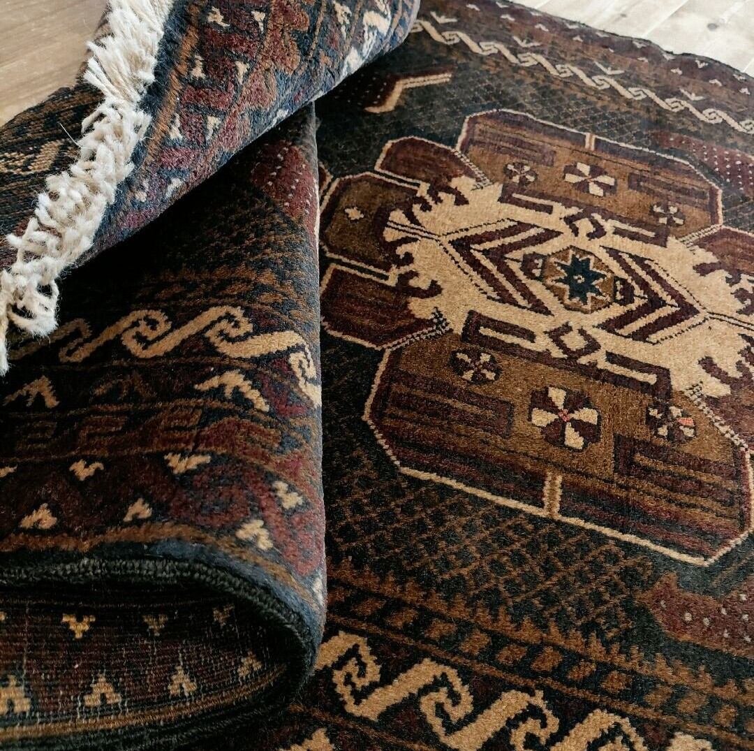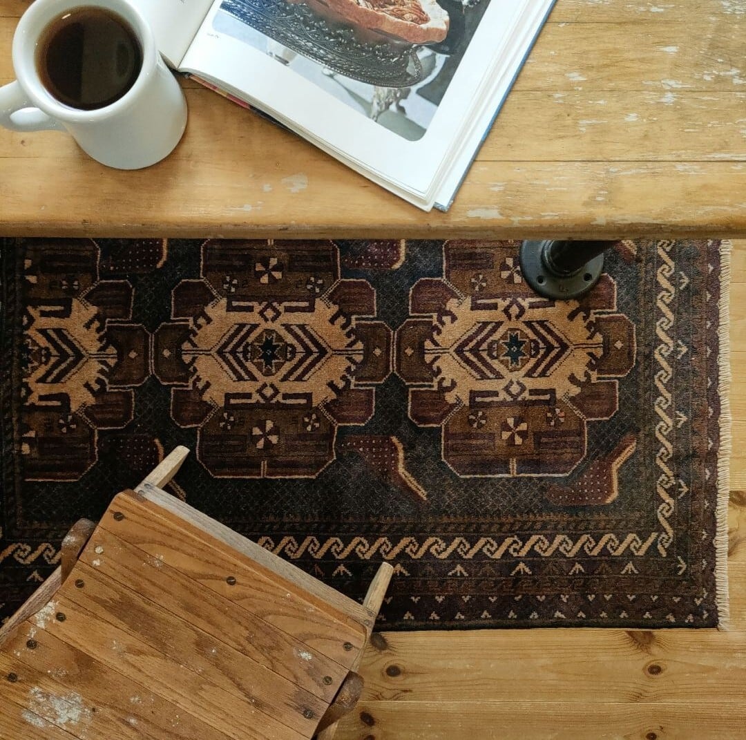 ※ヴィンテージラグにはウール特有のにおいがございます。天日干し等で軽減されますが、気になる方はお控えください。