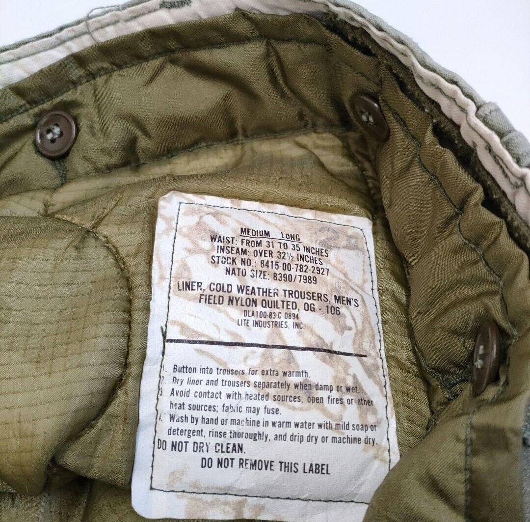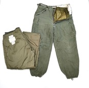 米軍実物 M-51 ミリタリーカーゴパンツ(ライナー付き)と、M-56ライナーのセットとなります。※M-56のライナーがパンツにセットされています。