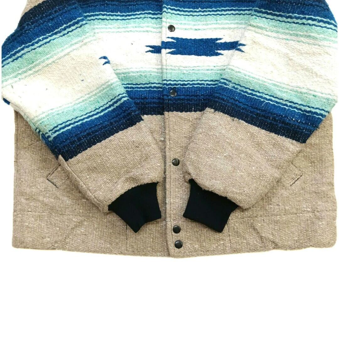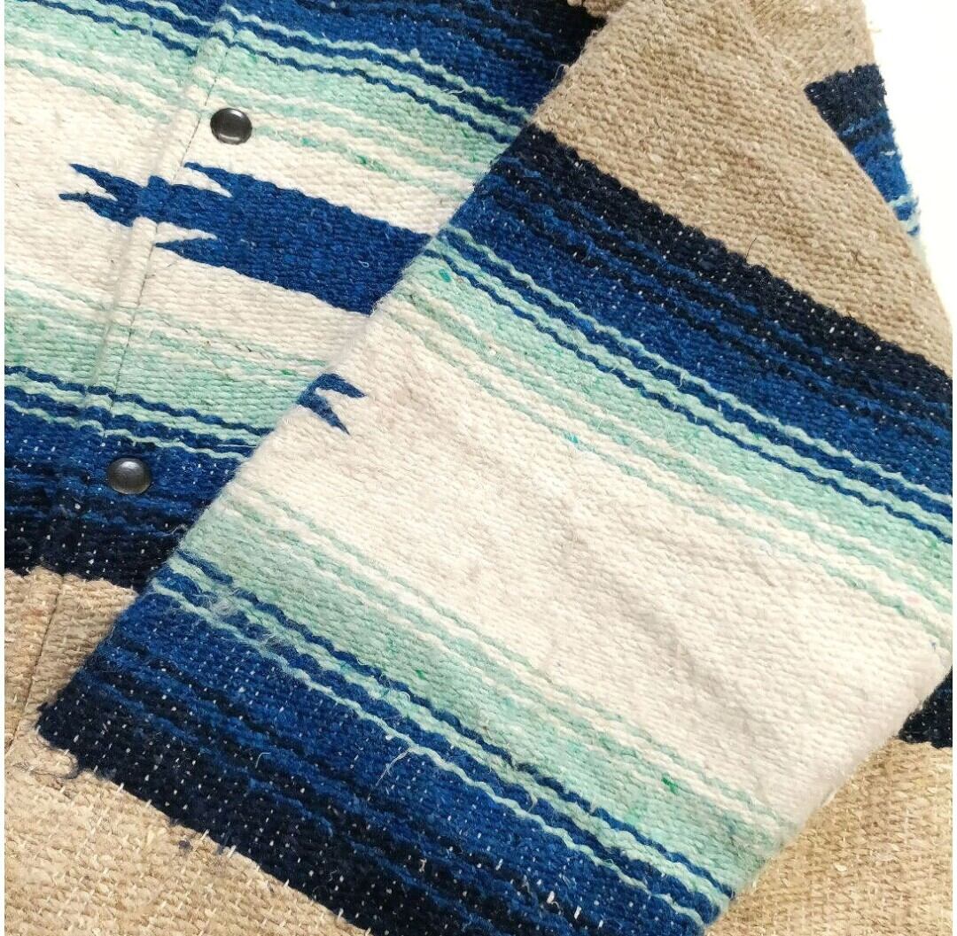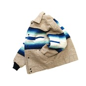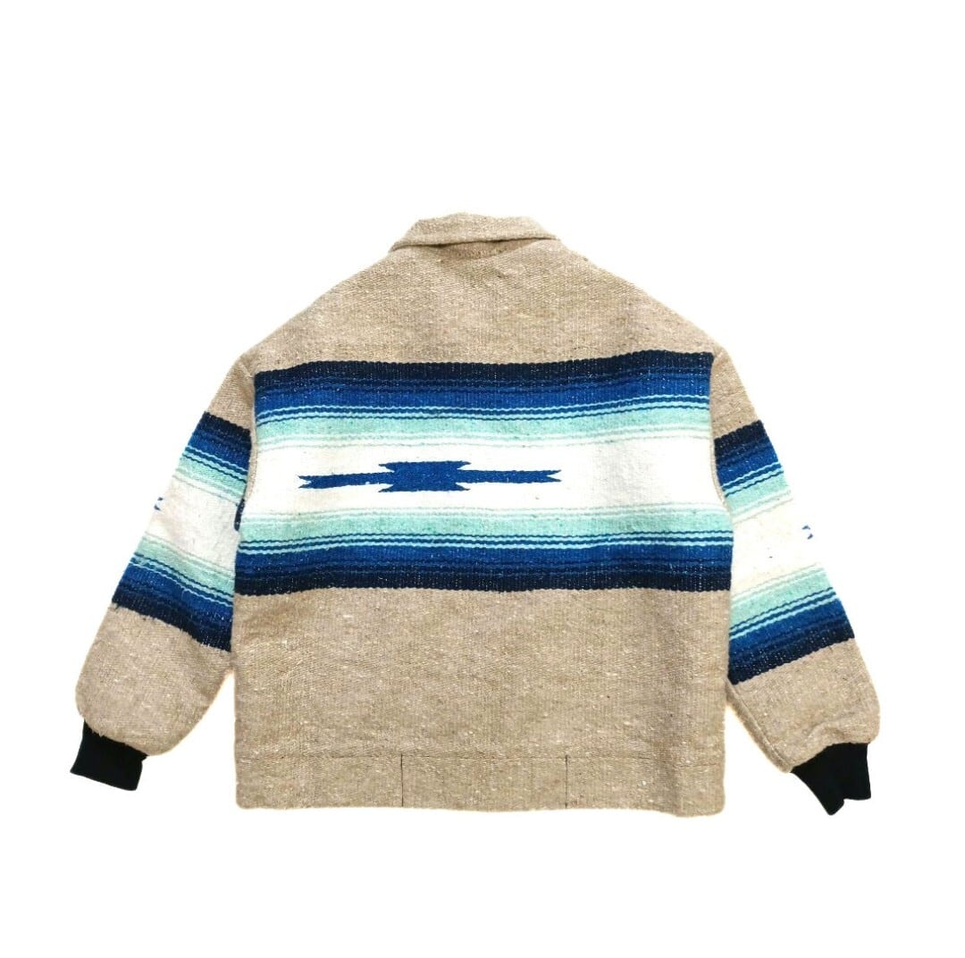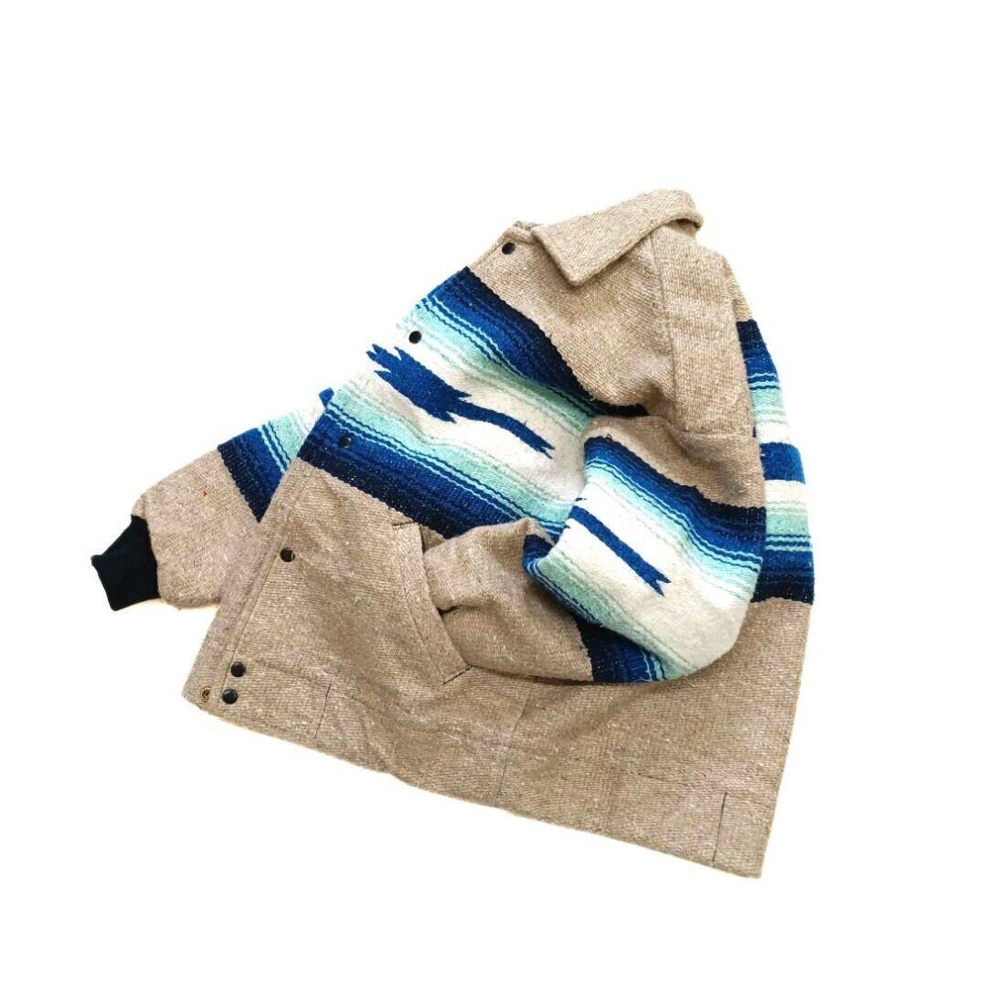 メキシカンラグのような素材感で、内側はキルティング仕様。個性的なデザインで目を惹くアウターです。