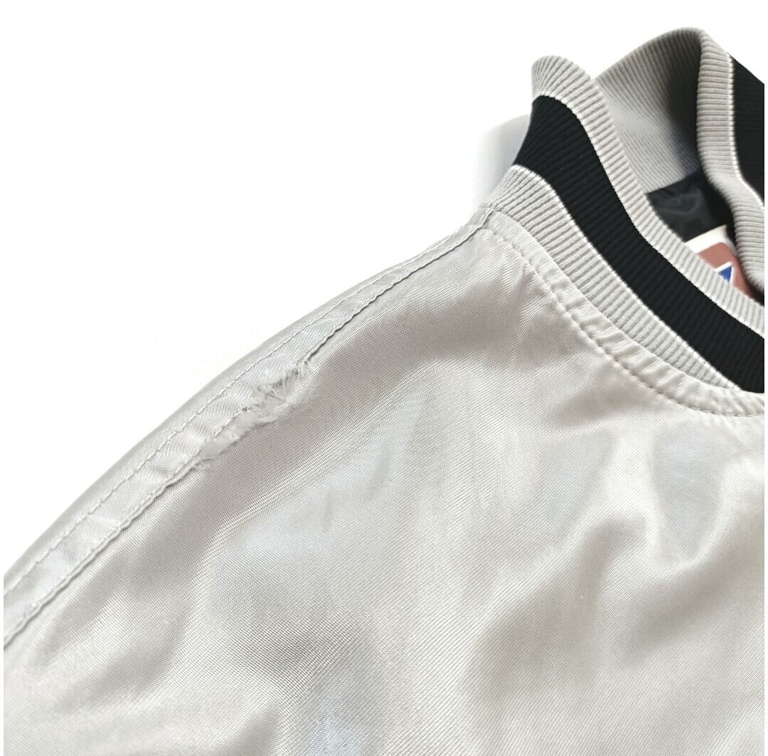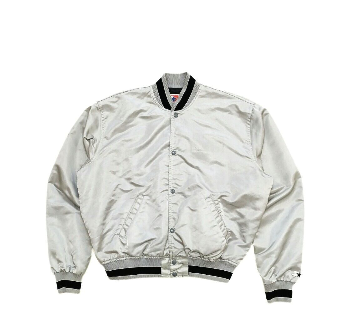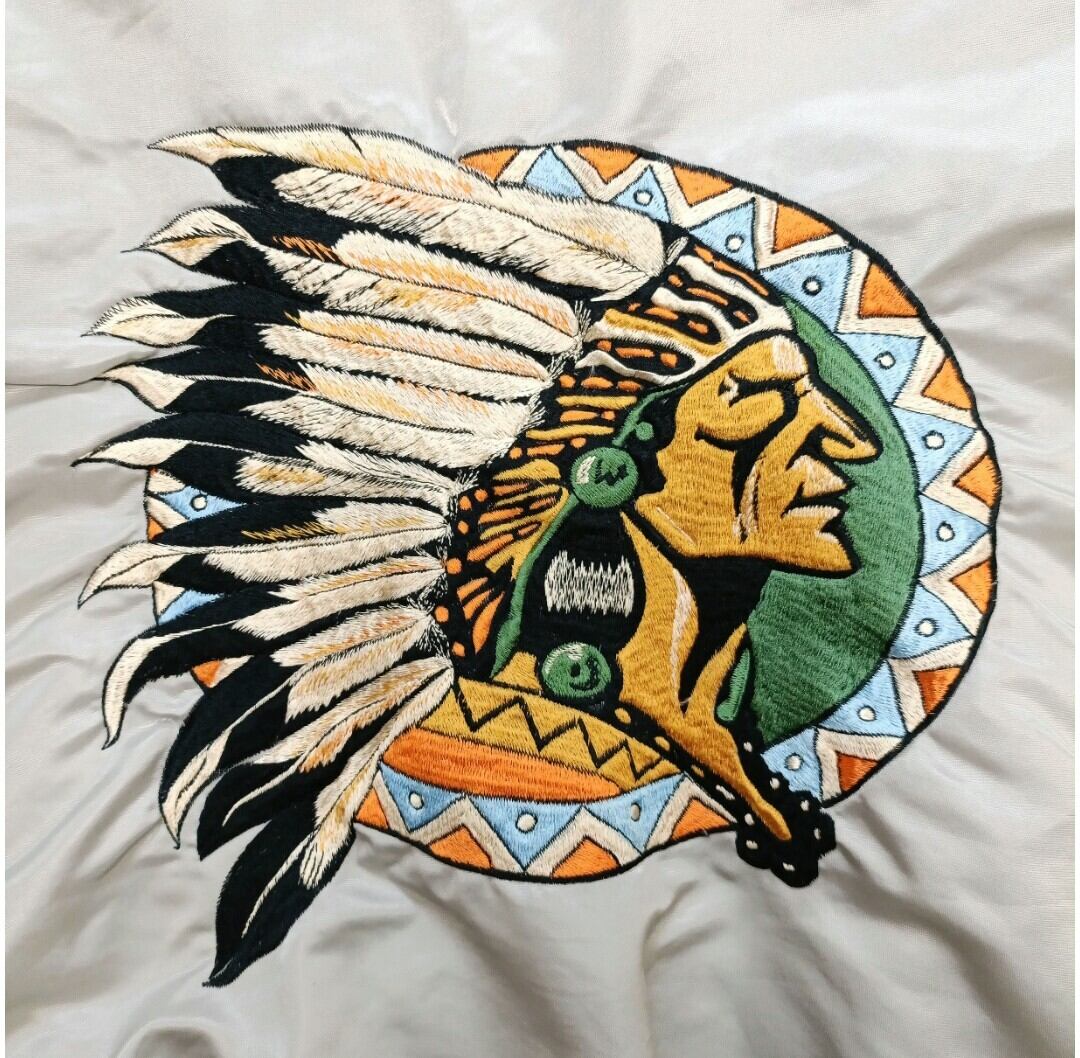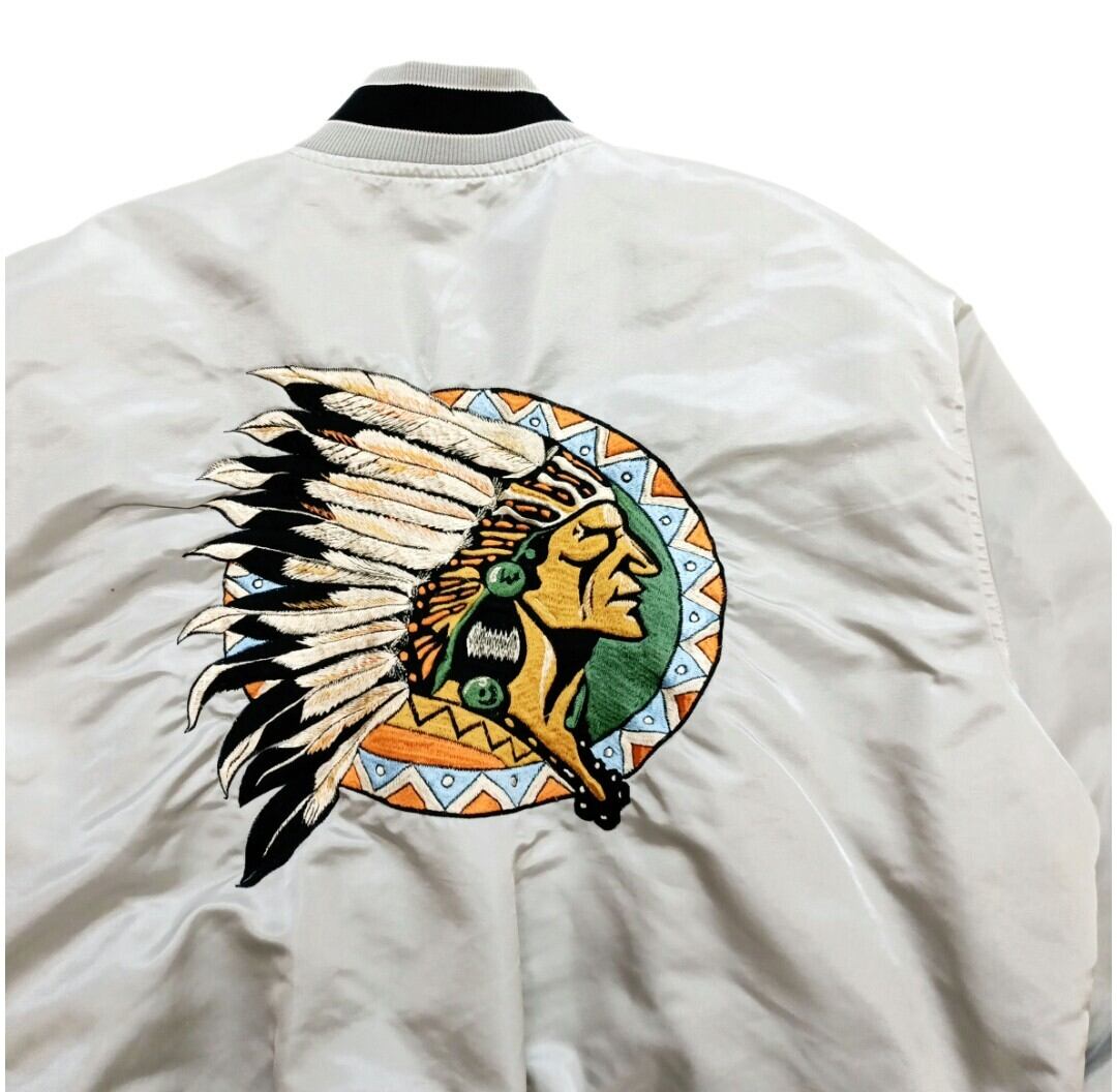 シルバーボディのバックに大きくインディアンヘッドが刺繍された、STARTER スターターのナイロンジャケットです。