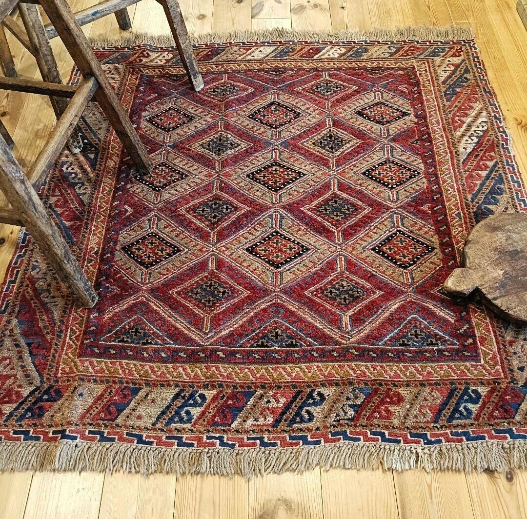高度なスマック織りのオールドキリム “ミシュワニラグ” です。送料無料でお届けいたします。